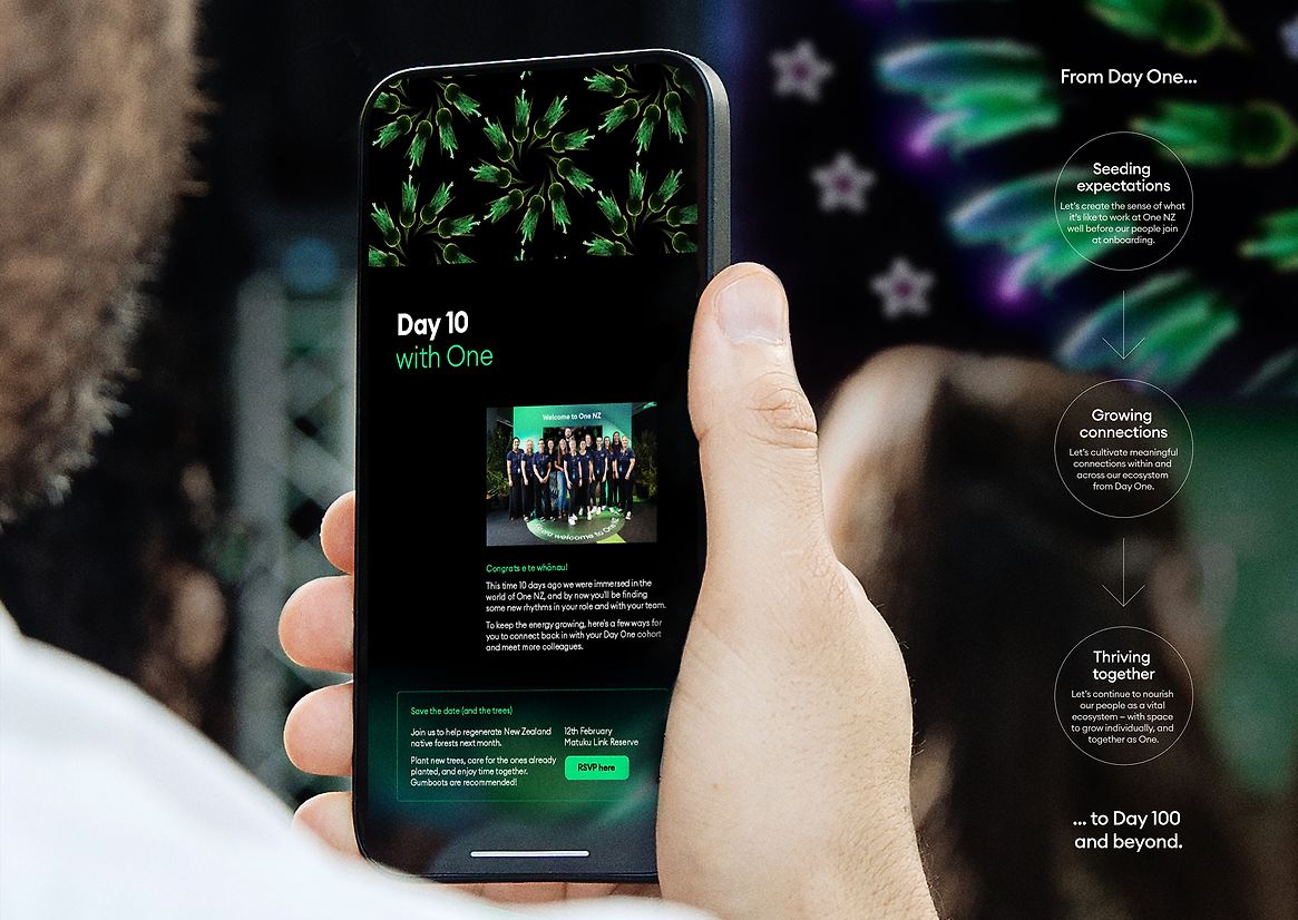 We worked with One NZ to transform their employee onboarding programme from a one off event, to become a fully immersive and meaningful experience that unfolds from the first day, to the next 100 days, and more.