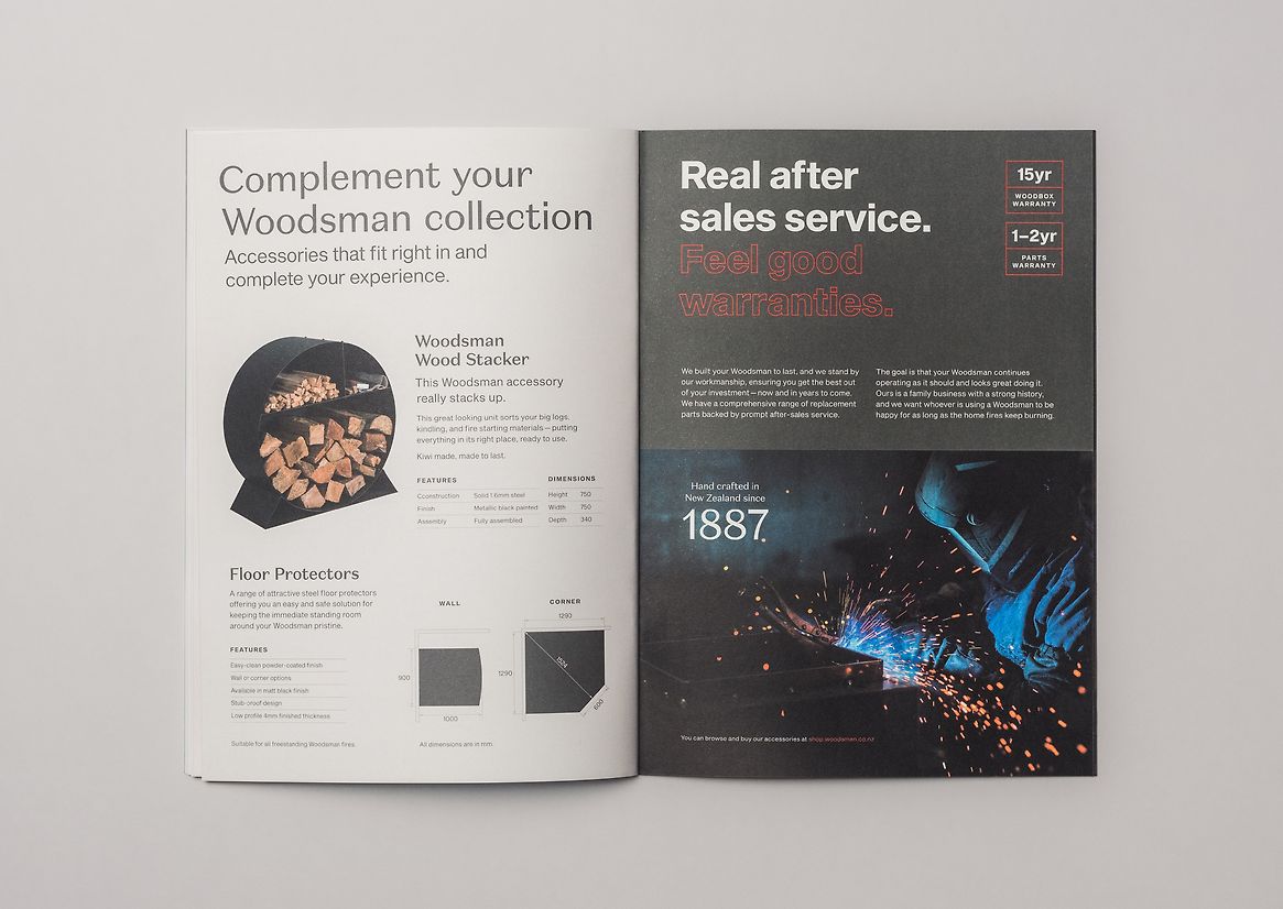 For our initial project with Woodsman, we were tasked with translating their rebranded image into the retail brochure. The client emphasised the importance of honest marketing by avoiding the industry's common practice of inflated specifications.