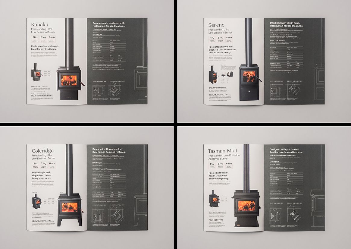 A key aspect of the client's brochure brief was the inclusion of a 'home heating calculator.' In line with the brand's commitment to honesty, avoiding inflated specifications. This transparent approach seamlessly aligned with the the ‘real’ aspect of the brand.