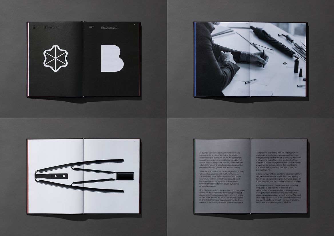 Part brand book, part brand guideline, the book outlines Blunt’s design ethos and approach in a way that’s engaging and tactile. Designed to be opened at any page to explore naturally and engage with, the chapters are curated to mirror the brand’s journey in a natural manner - rather than the typically rigid structure of brand books and guidelines. It’s intention is for consumers, partner brands and Blunt staff alike, effortlessly taking people on a journey to better understand the Blunt world, their purpose, values and their vision of the future.