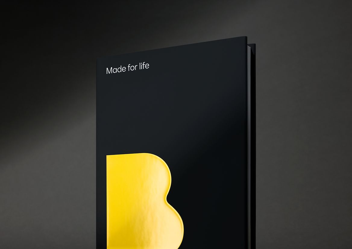 We produced the book in a traditional clothbound form so that it feels permanent and lasting - worthy of capturing such a legacy. Made for life, like the products. The experience is further elevated through a blind debossed iconic B, dual paper stocks for a sense of interaction and tactility.