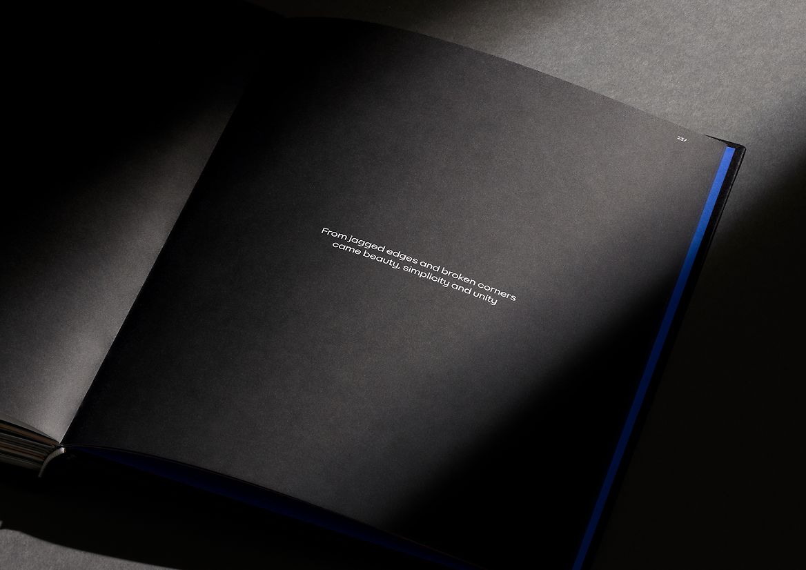 We also produced five unique soft-touch dust jackets in bold colours, which blend joy and sophistication, each with a high gloss iconic Blunt B, helping protect the book in the places it will be found and also further emphasising the engineering and innovation of the brand.