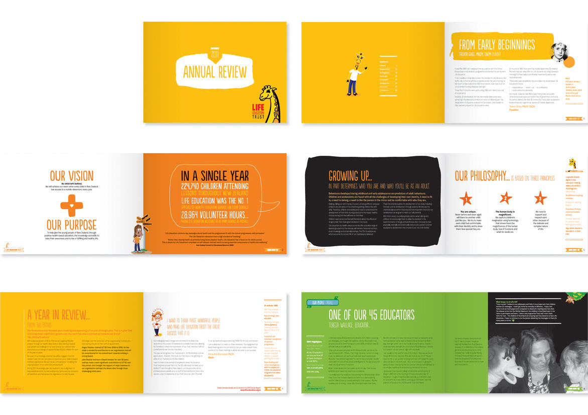 Graphic Business Communication Colour Award Graphics Design Communication Design Craft Editorial and Books Environmental Graphics Large Brand Identity Packaging Self Promotion Small Brand Identity Student & Academic Graphics Animation Digital Film Graphic Moving Image (archived 2025) Product Social Good Award Spatial Toitanga Value of Design Award User Experience Award (archived 2019) All categories Business Communication Colour Award Graphics Design Communication Design Craft Editorial and Books Environmental Graphics Large Brand Identity Packaging Self Promotion Small Brand Identity Student & Academic Graphics All years 2025 2024 2023 2022 2021 2020 2019 2018 2017 2016 2015 2014 2013 2012 2011 2010 Studio A-Z MO Design Co 2 Life Education Trust Annual Review 2011 Finalist 2012 Business Communication Credits Ringatoi Matua / Design Director Jane Ahern Ngā Kaimahi / Team Member Jane Ahern Kaitautoko / Contributor Dean Proudfoot Client Life Education Trust