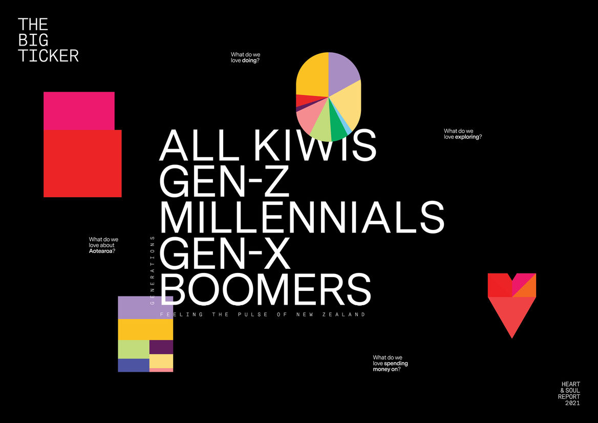 To understand New Zealanders you need to know what makes them tick, and The Big Ticker uncovers just that. By examining data at a macro and generational level it pinpoints how New Zealanders spend their time, attention and money. It’s a finger on the pulse of New Zealand that tells us precisely what makes hearts flutter.