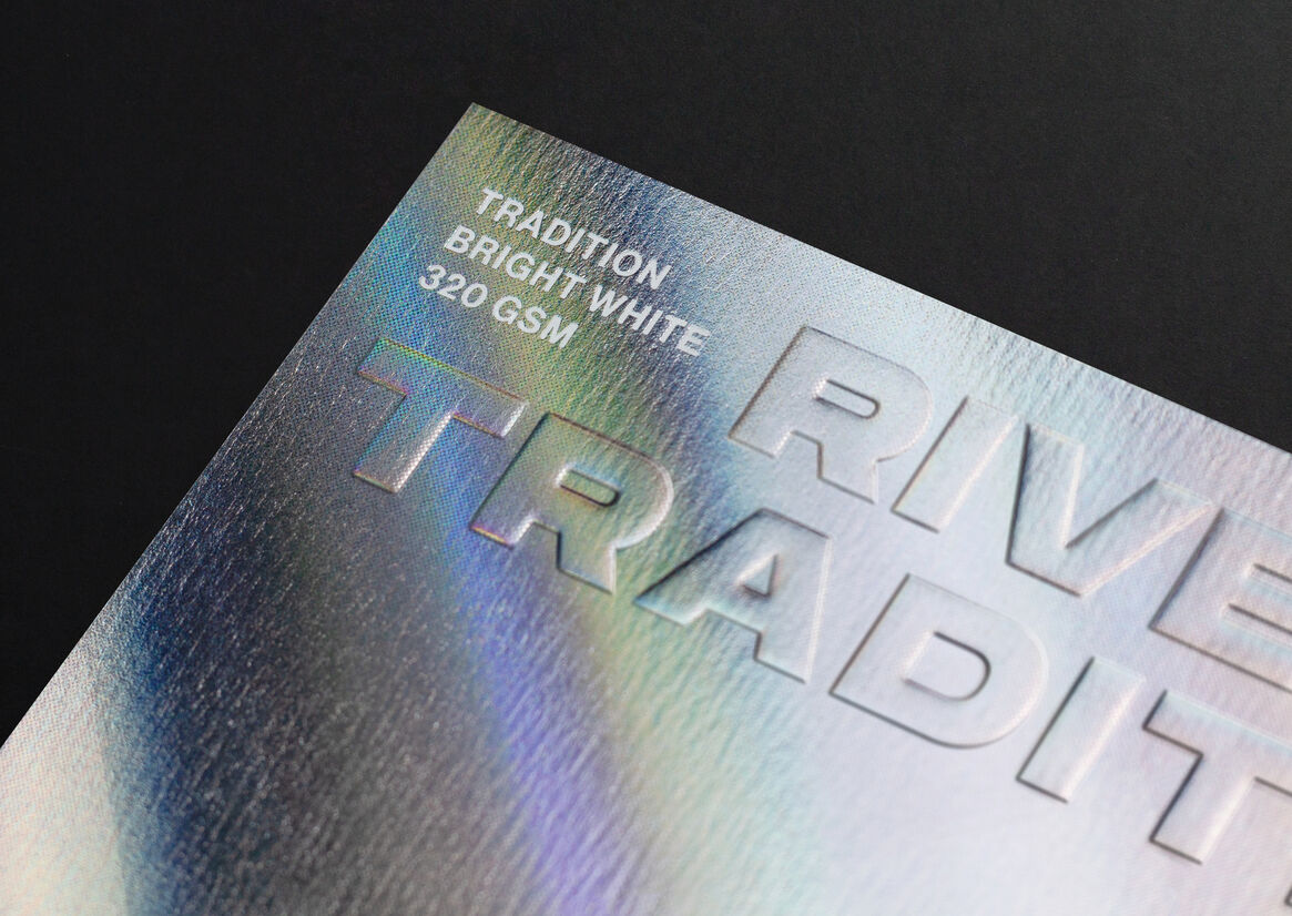 We created a publication containing 20 original artworks using the stock specifications as content for each. Working closely with our print partner, we used multiple processes including offset print, 4 colour process, double hit black, fluoros, multiple spot colours, hot foil stamping, embossing, and blind embossing. The spine is soft glued so that the pages can be pulled out and enjoyed as individual artworks.