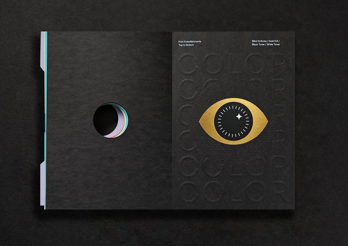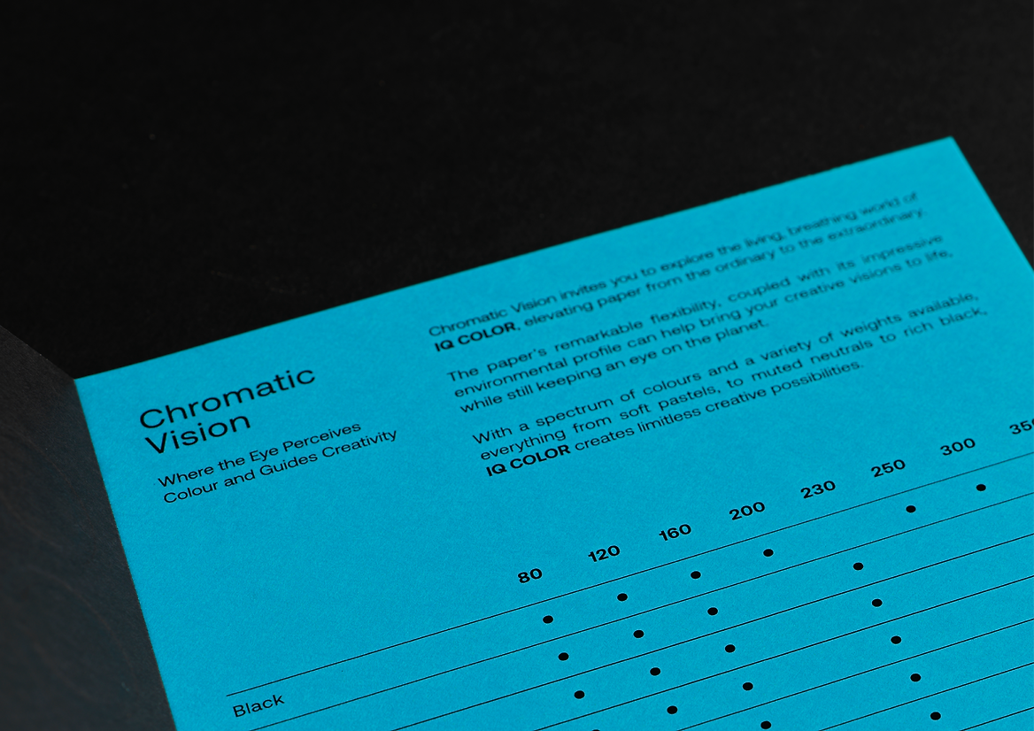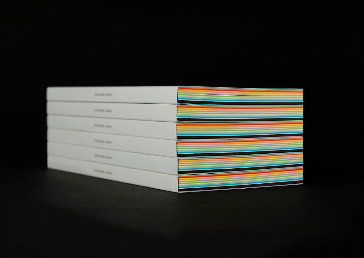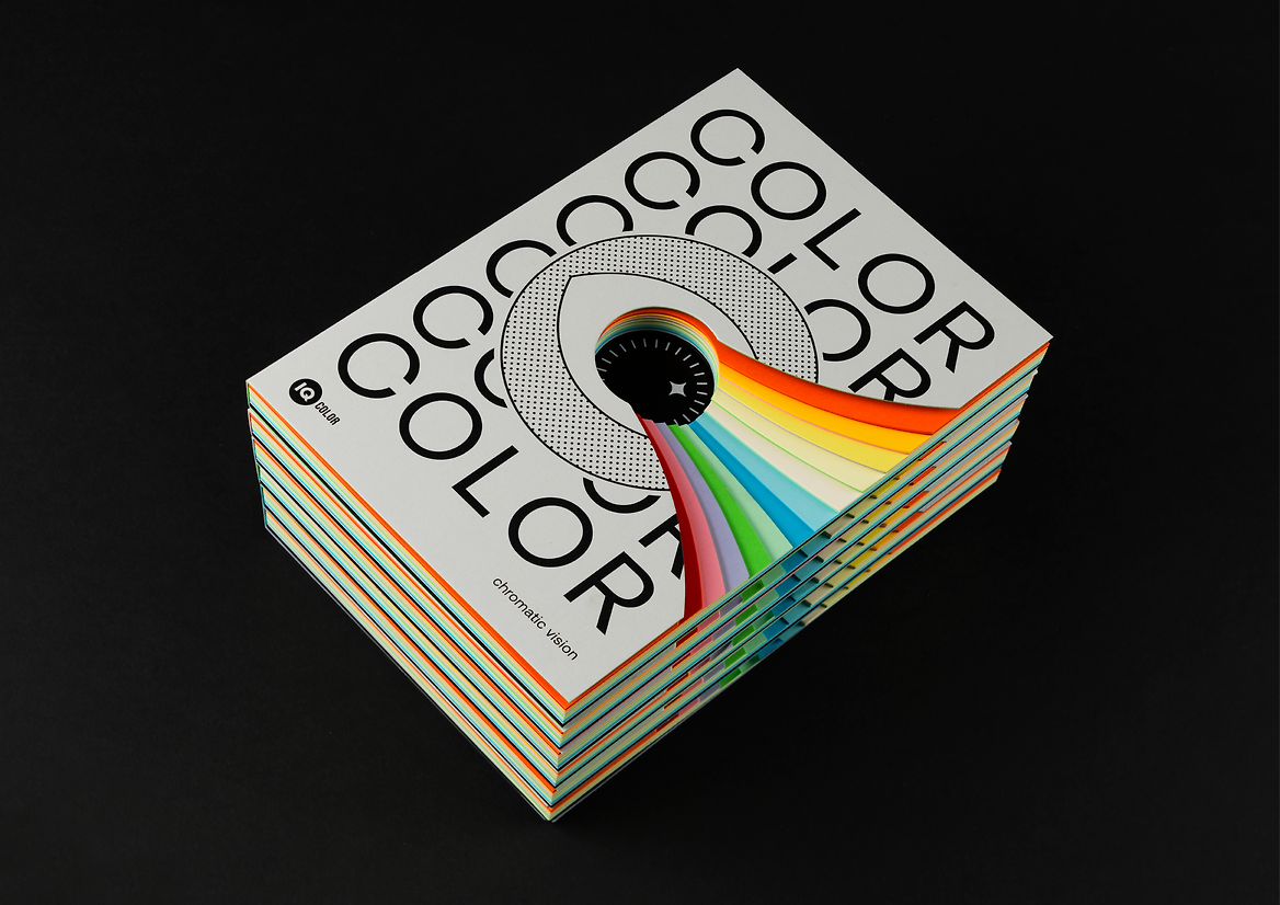 Chromatic Vision was our driving concept for the design of this promotional booklet. Specifically, chromatic vision refers to the ability for the brain to recognise colours in a spectrum. The human eye can perceive eleven million shades of colours. It became our goal to create a tool for designers and printers that would not only make their lives easier, but also delight the retina, and inspire them to create with colour.