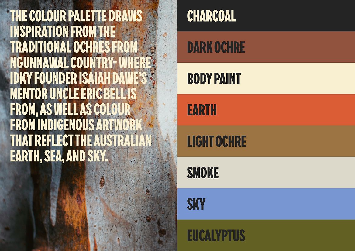To look closer into IDKY’s design system is to see inspiration from First Nations culture in all kinds of ways. For colour in particular, this means celebrating the deep connection between First Nations people and the natural land – and sharing in how Australian earth, sea and sky shape Indigenous storytelling.