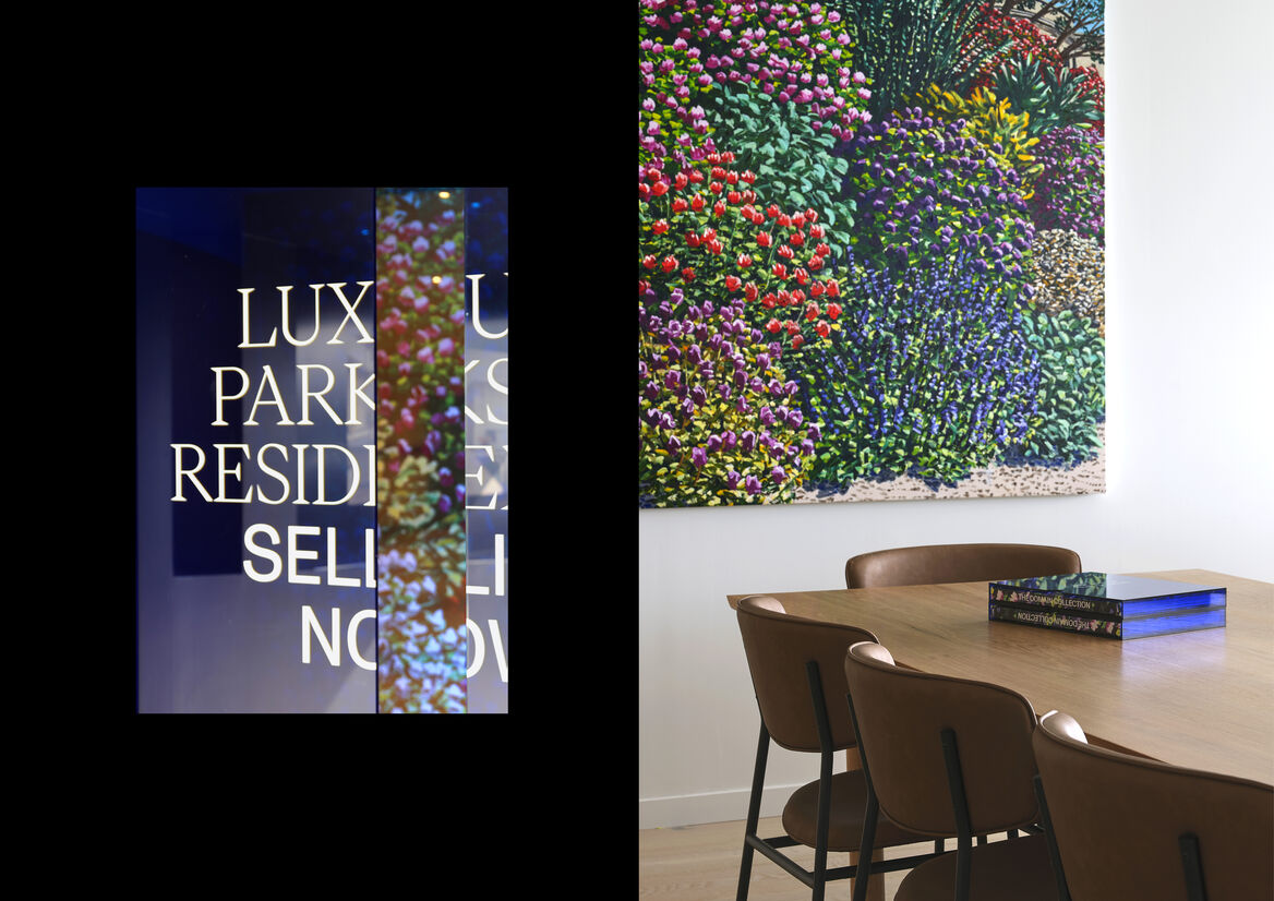 Working with the curated collection of artworks and photographs, a bespoke experience for buyers was developed across printed takeaway sales brochures, display suite books, and apartment plans. Typographic treatments within both printed and digital materials are refined and restrained, contributing to an aesthetic which is reflective of the development’s inherent value.