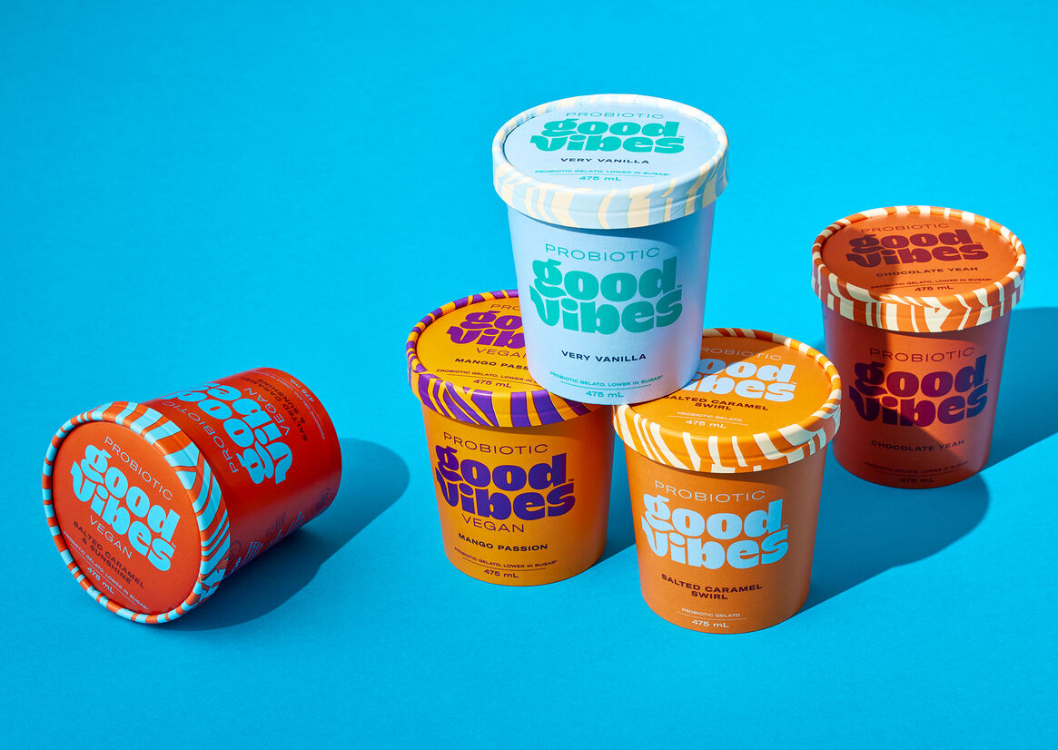 Good Vibes is Australia’s first probiotic ice cream featuring the natural cultures of kefir. With a cult underground following in their hometown of Melbourne, the brand was built via boutique fine-food retailers, with an initial offering of 4 dairy and 4 vegan flavours.