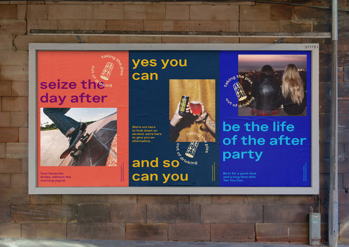 Given the challenge above, and the audience we’re talking to, we established early that Yes You Can was going to be a refreshingly positive, inclusive, and non-judgmental brand. The brand name is a statement of intent, referencing the willpower required to cut down, giving you permission to do your own thing, or if you just want to pace yourself by mixing your drinking with a non-alc breather, now you can.