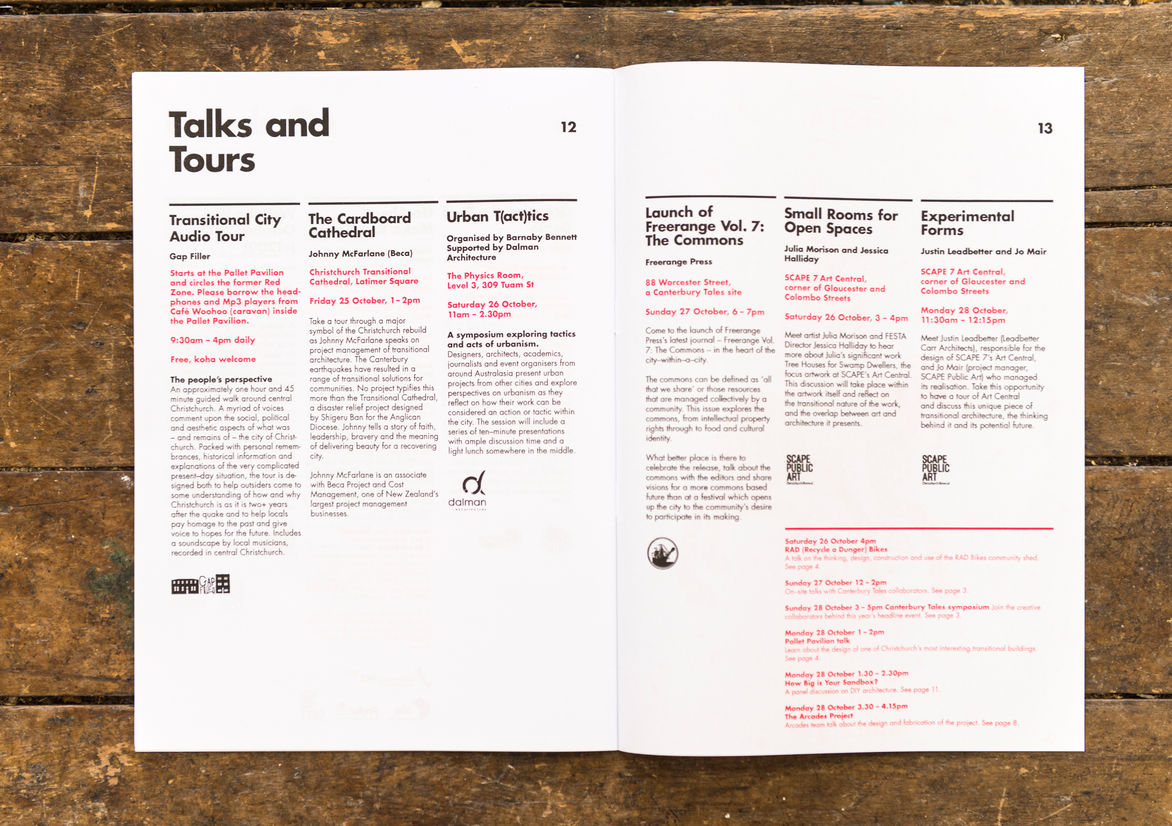 Graphic Business Communication Colour Award Graphics Design Communication Design Craft Editorial and Books Environmental Graphics Large Brand Identity Packaging Self Promotion Small Brand Identity Student & Academic Graphics Animation Digital Film Graphic Moving Image (archived 2025) Product Social Good Award Spatial Toitanga Value of Design Award User Experience Award (archived 2019) All categories Business Communication Colour Award Graphics Design Communication Design Craft Editorial and Books Environmental Graphics Large Brand Identity Packaging Self Promotion Small Brand Identity Student & Academic Graphics All years 2025 2024 2023 2022 2021 2020 2019 2018 2017 2016 2015 2014 2013 2012 2011 2010 Studio A-Z Matthew Galloway 10 The Festival of Transitional Architecture Finalist 2014 Colour Award Graphics Credits Pou Auaha / Creative Director Matthew Galloway Client The Festival of Transitional Architecture