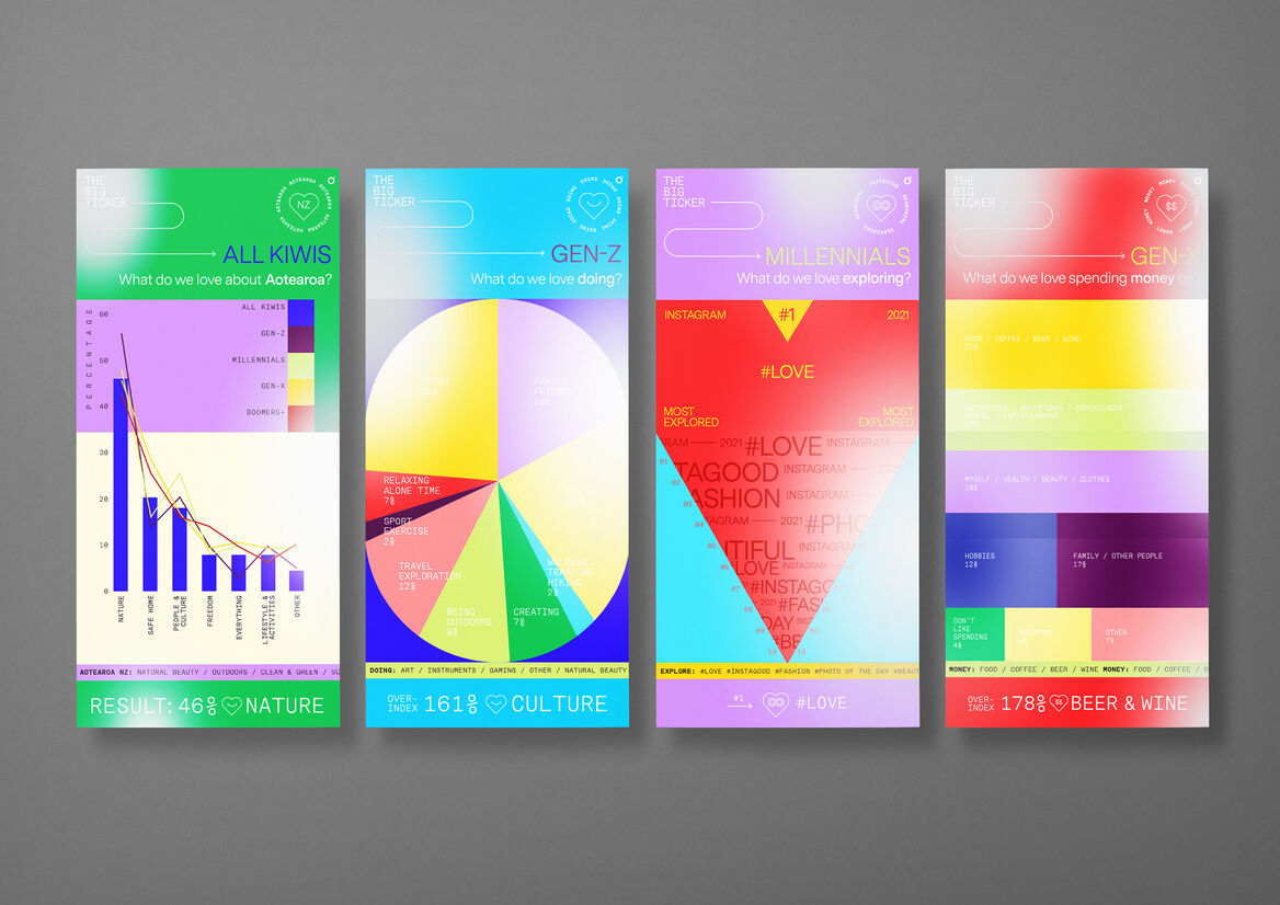 To understand New Zealanders you need to know what makes them tick, and The Big Ticker uncovers just that. By examining data at a macro and generational level it pinpoints how New Zealanders spend their time, attention and money. It’s a finger on the pulse of New Zealand that tells us precisely what makes hearts flutter.