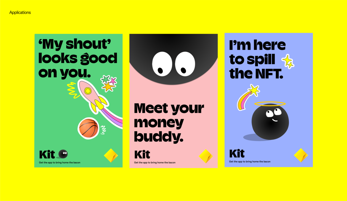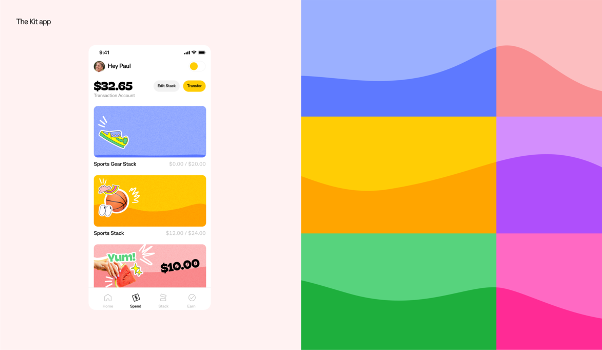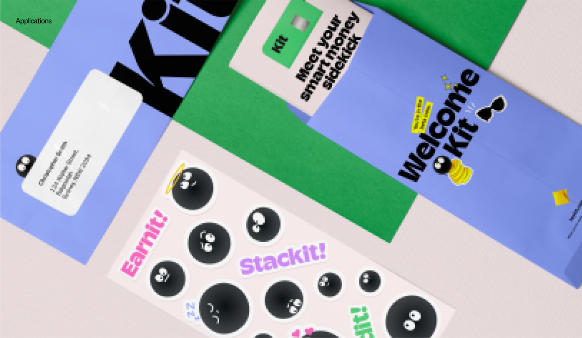 The hero character, Kit, was inspired by the tittle of the i, simple yet unified with the brand system. Cheerful and cheeky, Kit is the ultimate money sidekick for kids throughout their entire product experience. The Kit app does more than just make financial education fun –it enables kids and grown-ups to learn together. It’s designed to be simple, visual and customisable so kids can be independent and Earnit, Stackit, Spendit and most importantly, Learnit their way.