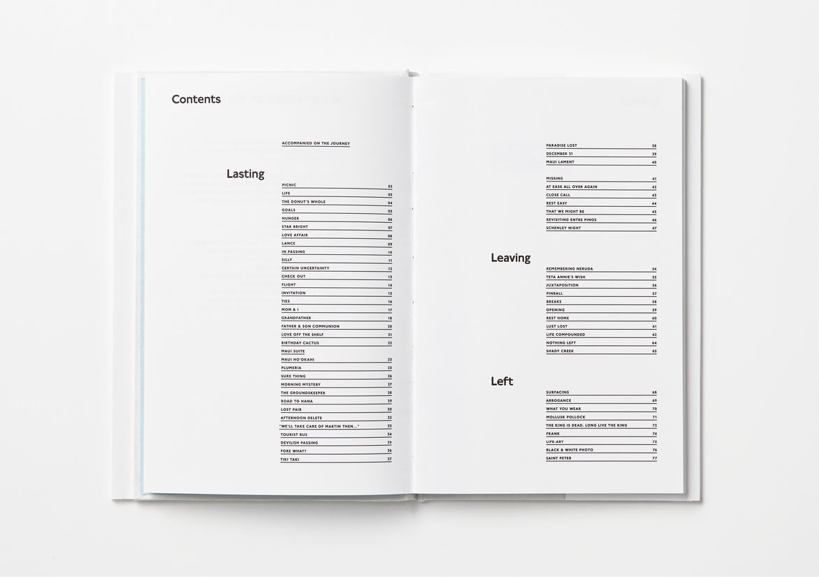 Graphic Business Communication Colour Award Graphics Design Communication Design Craft Editorial and Books Environmental Graphics Large Brand Identity Packaging Self Promotion Small Brand Identity Student & Academic Graphics Animation Digital Film Graphic Moving Image (archived 2025) Product Social Good Award Spatial Toitanga Value of Design Award User Experience Award (archived 2019) All categories Business Communication Colour Award Graphics Design Communication Design Craft Editorial and Books Environmental Graphics Large Brand Identity Packaging Self Promotion Small Brand Identity Student & Academic Graphics All years 2025 2024 2023 2022 2021 2020 2019 2018 2017 2016 2015 2014 2013 2012 2011 2010 Studio A-Z Saatchi & Saatchi Design Worldwide 37 Lasting, Leaving, Left – Poems by Robin Dyke 2014 Colour Award Graphics Credits Pou Auaha / Creative Director Shabnam Shiwan Ngā Kaimahi / Team Members Anushka Bihari, Callum Bakker Client Robin Dyke Judge's comments: This little book sparingly used delicate colour, which worked perfectly with both the layout of the book and typography.