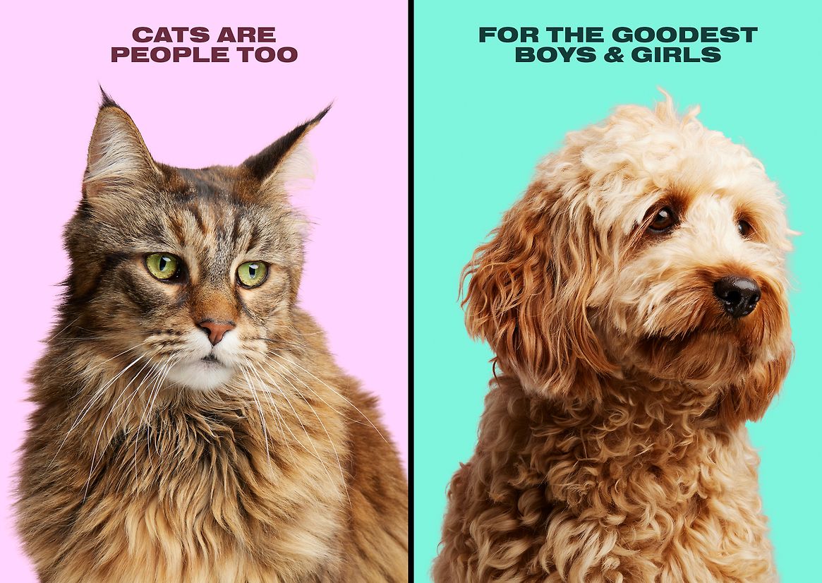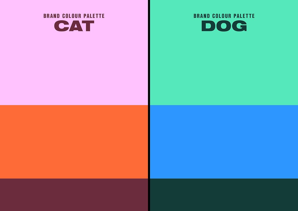 Colour plays a crucial role in differentiating between product lines and flavours. For dog food, shades of blue and green evoke a sense of freshness. Meanwhile, cat food turns up the warmth with orange and pink tones, reflecting the playful and vibrant palettes seen in seasonal fashion collections.