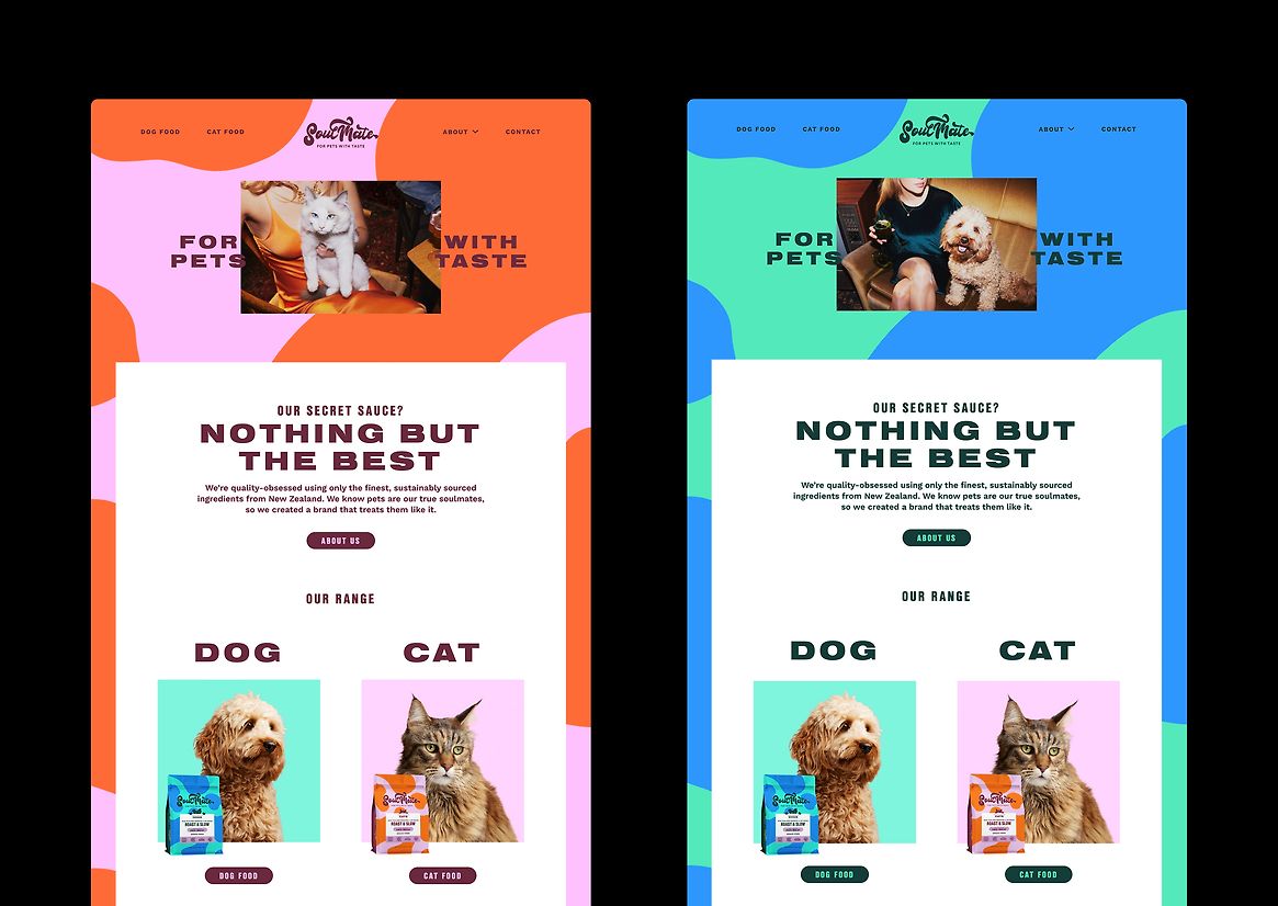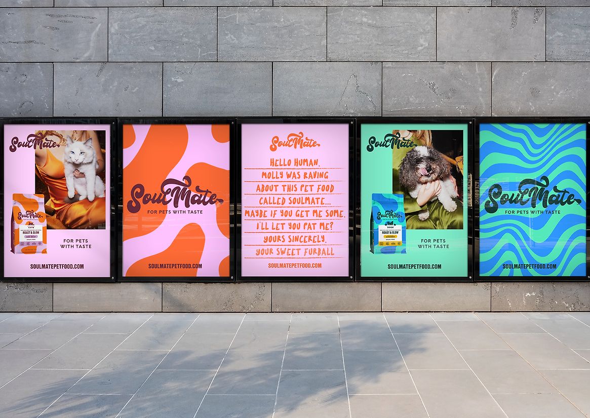 SoulMate isn’t just about feeding pets; it’s about celebrating them. Designed to turn heads online, on-shelf, and in-hand, SoulMate draws heavily on contemporary fashion trends with its bright, saturated colours and dynamic patterns. With an eclectic palette of brand colours, this disruptor shakes up the category with a bold, fashion-forward confidence.