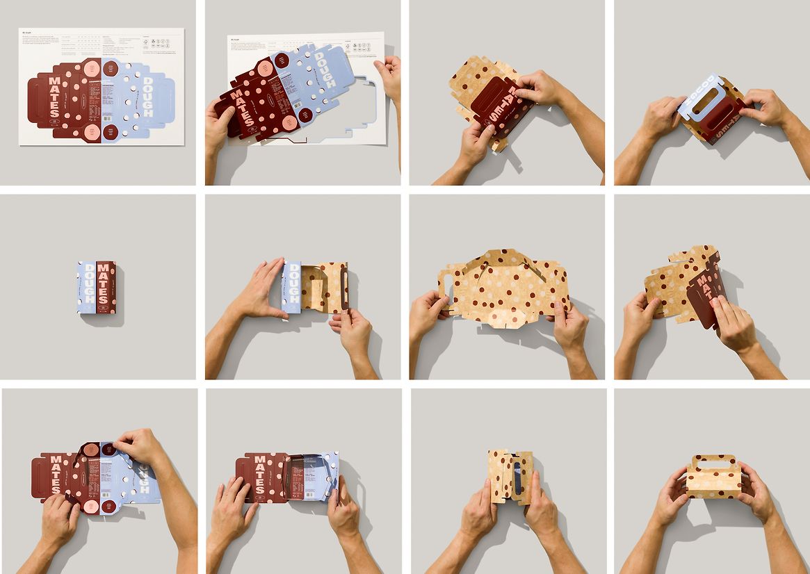 Spicers and Direct Paper created a series promoting six sustainable packaging boards, targeting the food, beverage, health, and pharmaceutical industries. Each promotion featured a ‘pop-out’ packaging piece on an SRA3 sheet for easy assembly and clear stock specifications, enhancing engagement with potential leads. The designs introduced playful fictional brands like Kid’s Mini Vits and Sakini Non-Alcoholic Cocktail Drink Kits, disrupting traditional categories and showcasing innovation in structural design with features like tear strips and unique flap shapes. These designs not only highlight stock versatility but also aim to give packaging a second life, such as Mini Vits transforming into Frank, a playful educational character, and Dough Mates converting into a cookie tray. By emphasizing sustainability and user experience, we demonstrate how thoughtful design can elevate affordable packaging solutions.