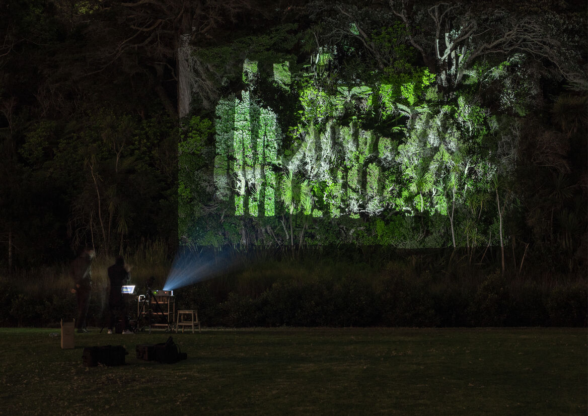 The poem was brought to life by being projected at a large scale onto a wall of native bush.