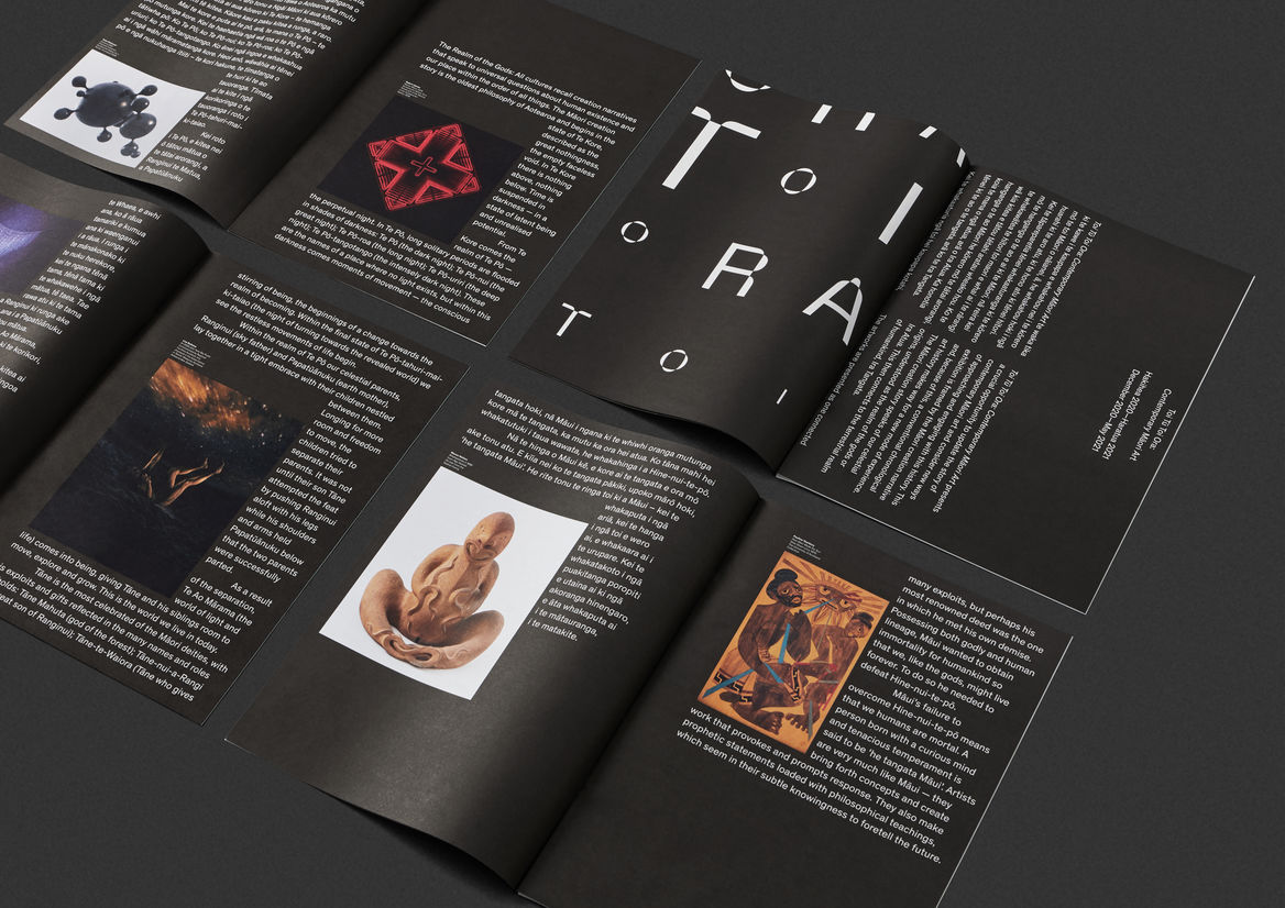 Our approach was to reflect the unique Māori curatorial framework of the show, based on the Māori creation narrative.