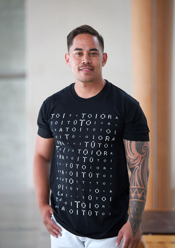 The words Toi Tū Toi Ora repeatedly chant their way through the gallery space and throughout all the design elements. Proudly affirming the meanings within – Māori art stands strong and in good health.