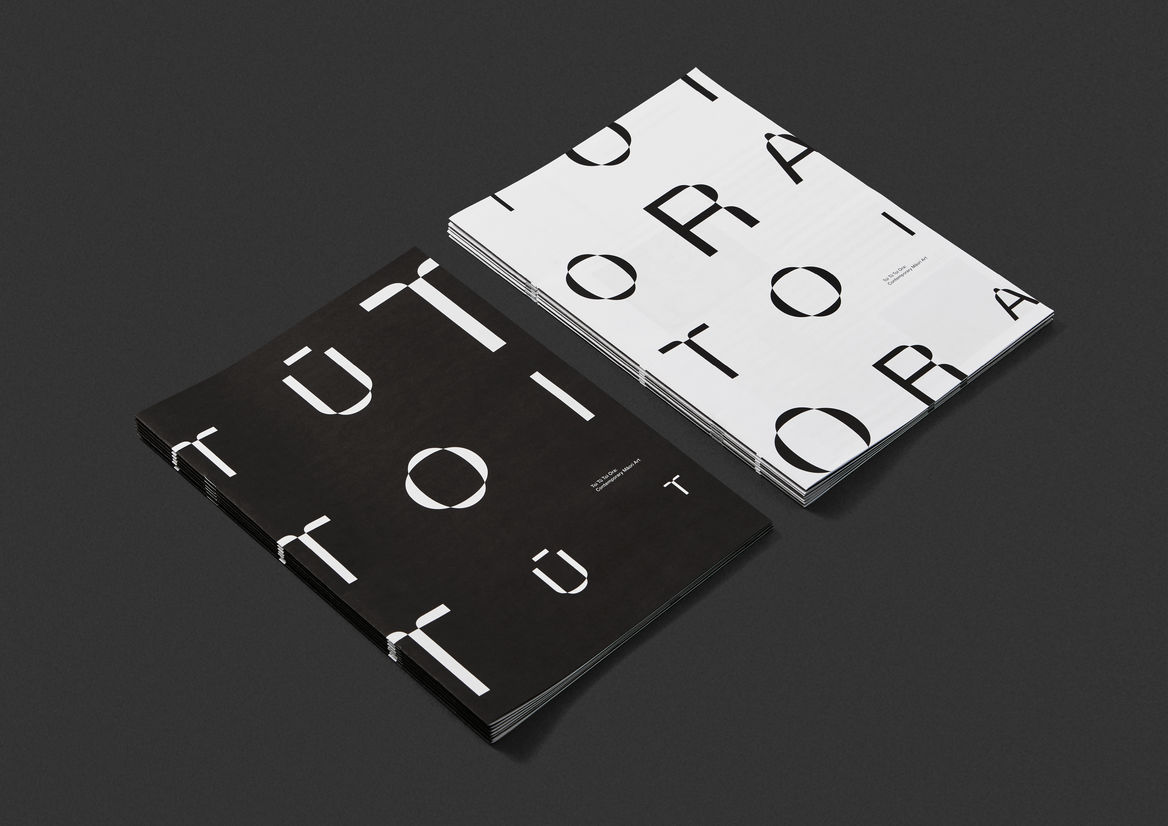 The titular typeface has straight edges, but also warps and bends in mythical ways to reflect the straight lines of Māori woven art forms, as well as the organic curves of carved art forms.