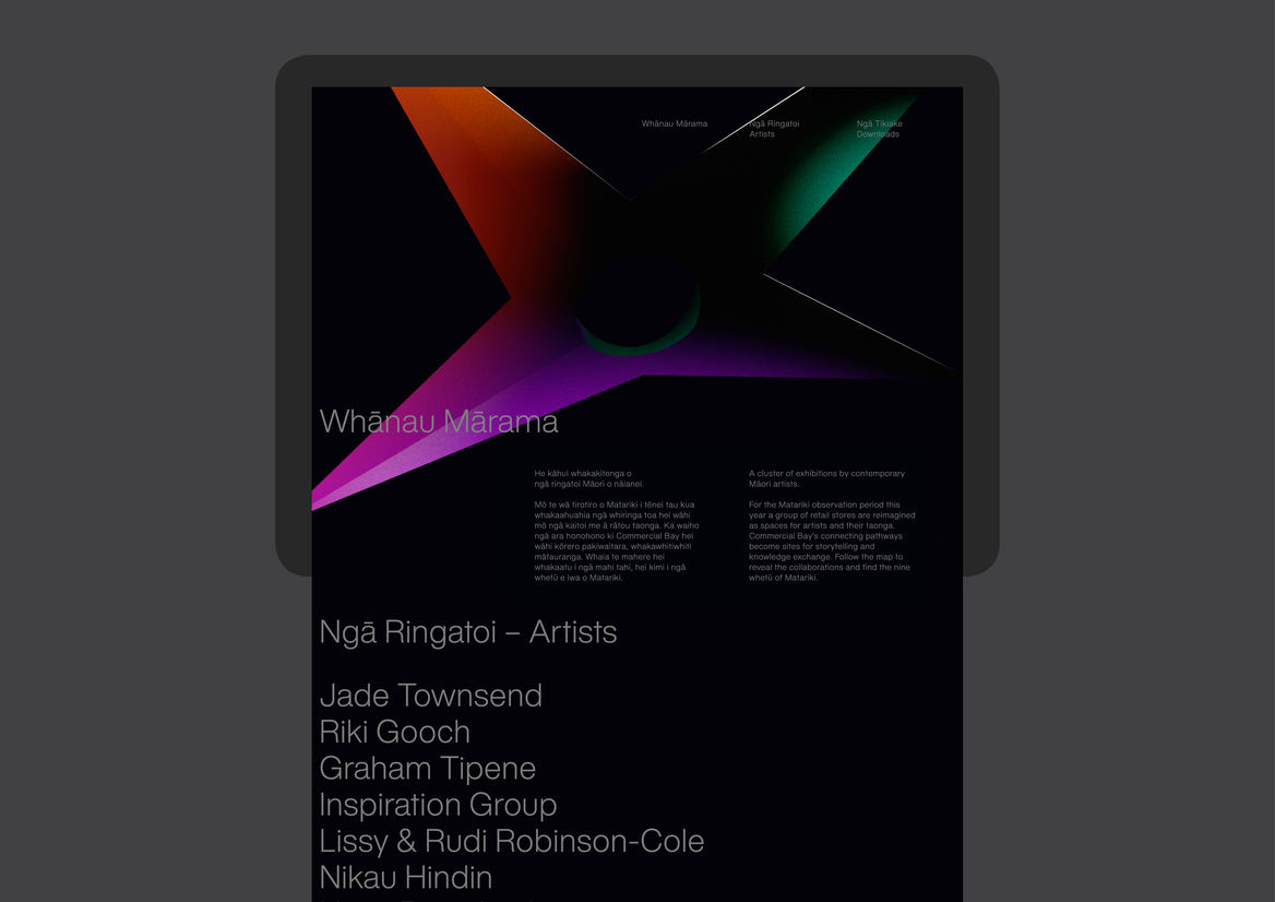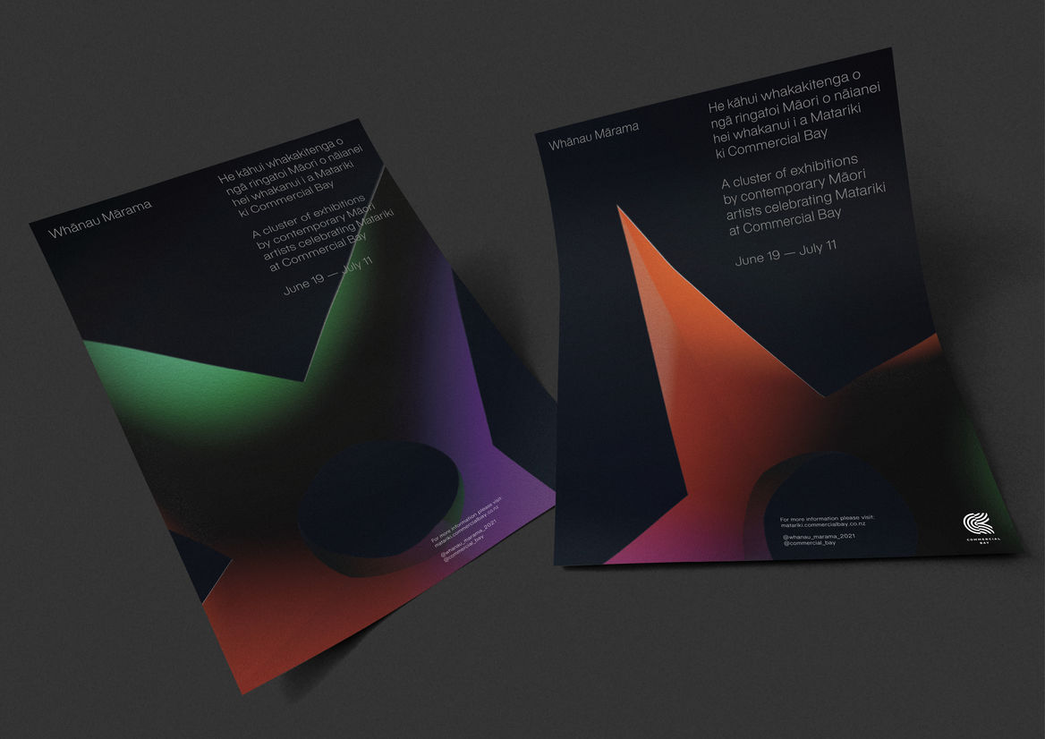 Whānau Mārama is a cluster of exhibitions by contemporary Māori artists celebrating Matariki at Commercial Bay.