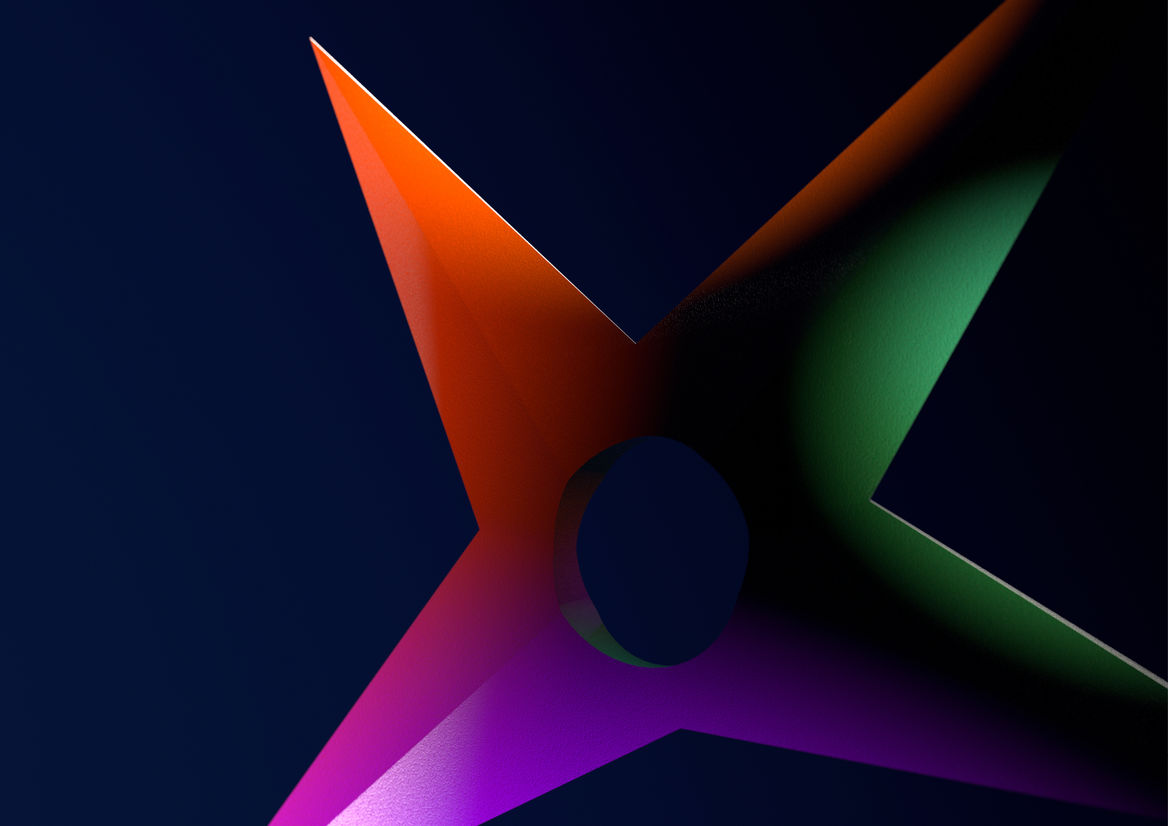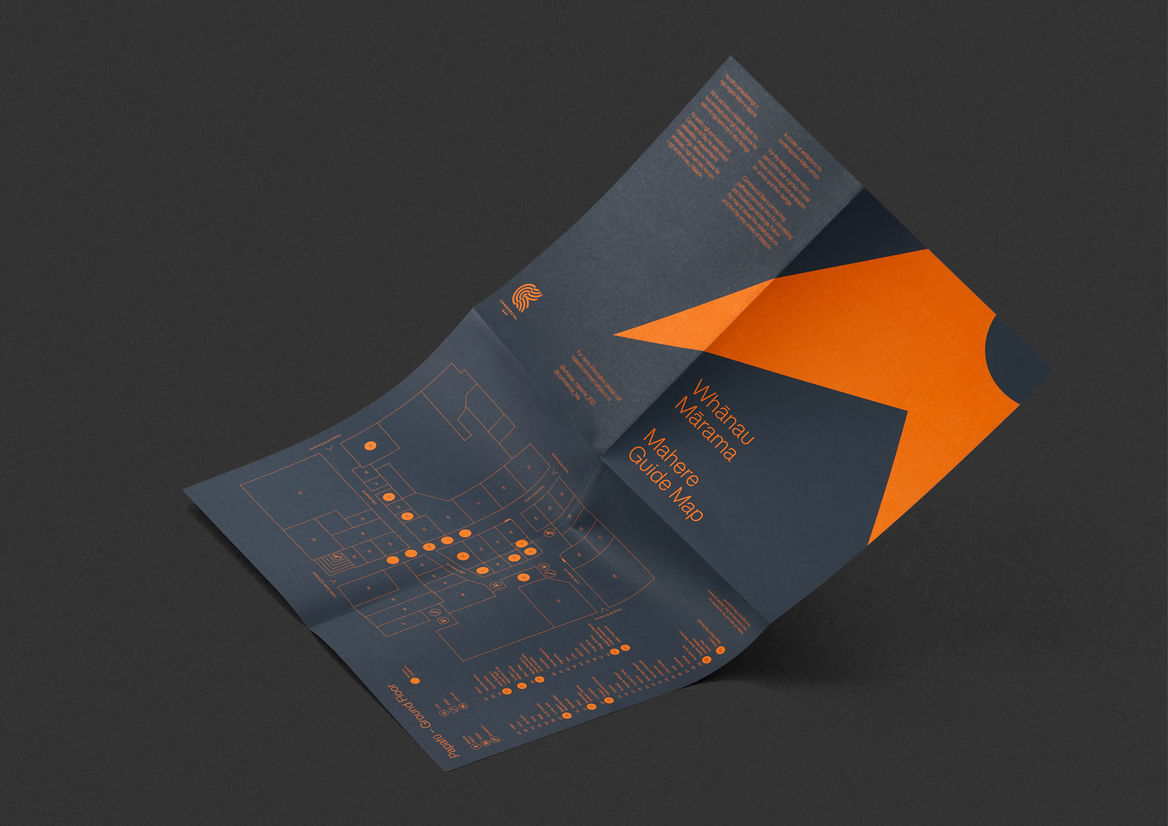 Constantly shifting between a sculpture, a symbol, a colourful image render, fluorescent shapes, and ever-changing iridescent decals, Whānau Mārama acts as an ever-shifting experience that reflects both the exhibition and Matariki.