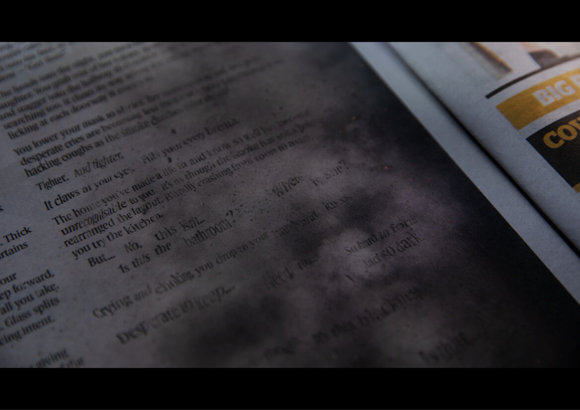Escape the Paper was the second part of the campaign, that brought the same reality to life, but in a different way. Made up of 4 separate placements scattered throughout the paper, the story is an immersive experience, mirroring the panic and disorientation of someone running from room to room, trying to escape a fire. Ultimately leading to a tragic conclusion.