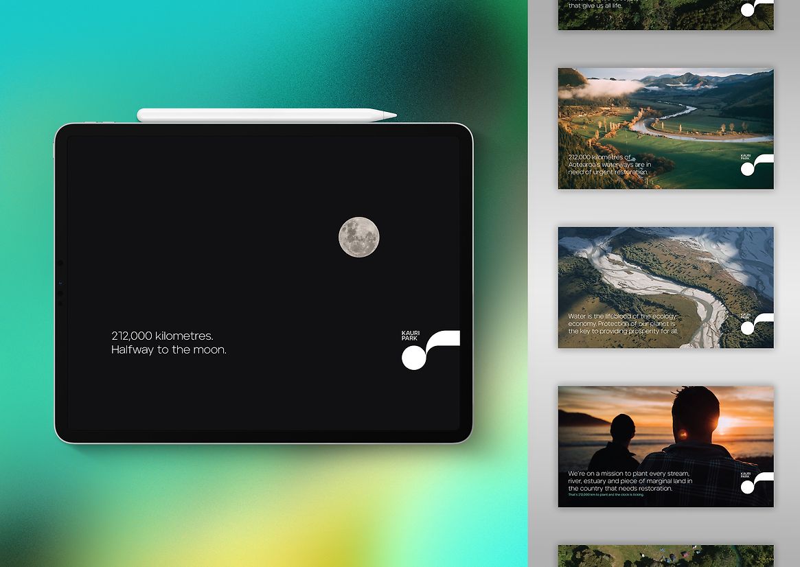 More than this, our brand and design strategy birthed a brand purpose that will leave a lasting national, and global, legacy. Mission 212 is Kauri Park’s mission to revitalise 212,000km of Aotearoa’s waterways (the number that need urgent restoration) so that they are teeming with life. For context, 212,000km is halfway from Earth to the moon.