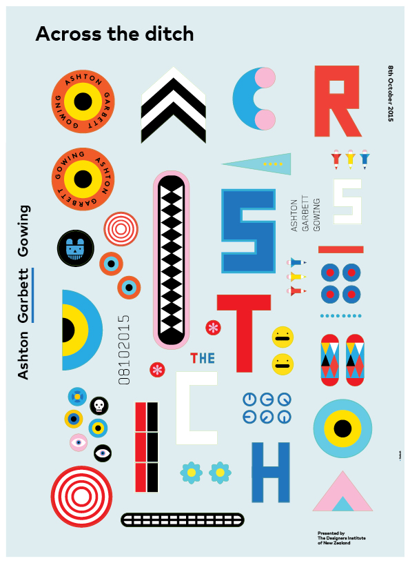 Graphic Business Communication Colour Award Graphics Design Communication Design Craft Editorial and Books Environmental Graphics Large Brand Identity Packaging Self Promotion Small Brand Identity Student & Academic Graphics Animation Digital Film Graphic Moving Image (archived 2025) Product Social Good Award Spatial Toitanga Value of Design Award User Experience Award (archived 2019) All categories Business Communication Colour Award Graphics Design Communication Design Craft Editorial and Books Environmental Graphics Large Brand Identity Packaging Self Promotion Small Brand Identity Student & Academic Graphics All years 2025 2024 2023 2022 2021 2020 2019 2018 2017 2016 2015 2014 2013 2012 2011 2010 Studio A-Z Garbett 15 Across The Ditch Poster 2016 Design Communication Credits Pou Auaha / Creative Director Paul Garbett Client Design Institute of New Zealand