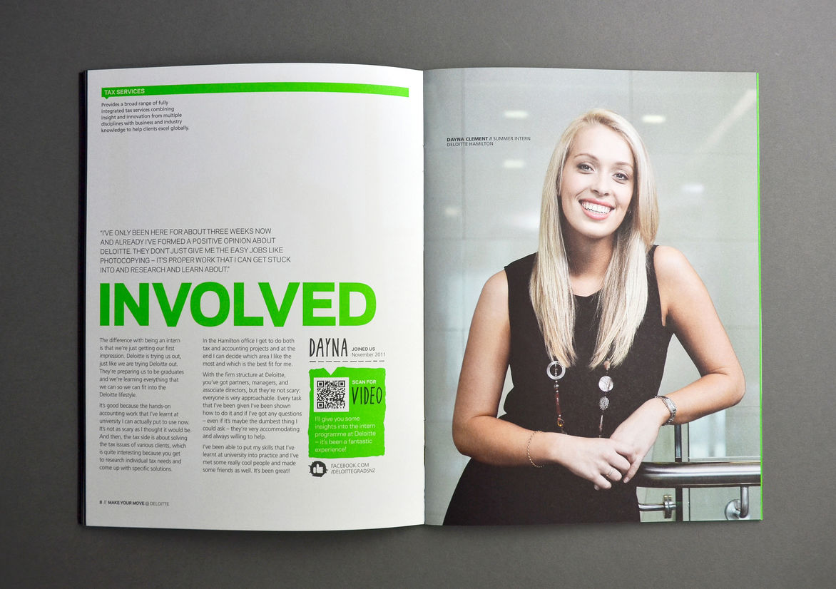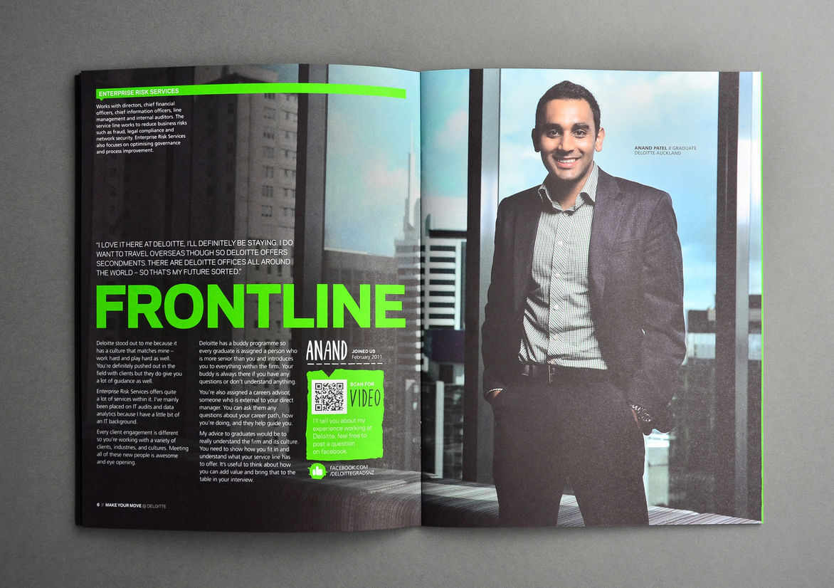 Graphic Business Communication Colour Award Graphics Design Communication Design Craft Editorial and Books Environmental Graphics Large Brand Identity Packaging Self Promotion Small Brand Identity Student & Academic Graphics Animation Digital Film Graphic Moving Image (archived 2025) Product Social Good Award Spatial Toitanga Value of Design Award User Experience Award (archived 2019) All categories Business Communication Colour Award Graphics Design Communication Design Craft Editorial and Books Environmental Graphics Large Brand Identity Packaging Self Promotion Small Brand Identity Student & Academic Graphics All years 2025 2024 2023 2022 2021 2020 2019 2018 2017 2016 2015 2014 2013 2012 2011 2010 Studio A-Z Insight Creative 59 Deloitte Graduate Recruitment Finalist 2012 Design Communication Credits Ringatoi Matua / Design Director Brian Slade Ngā Kaimahi / Team Member Edwin Hooper Kaitautoko / Contributors Claire Evans, LeeAnne Berney, Mason Smith Client Deloitte