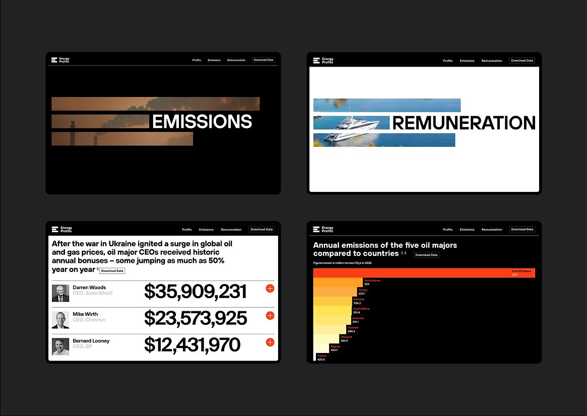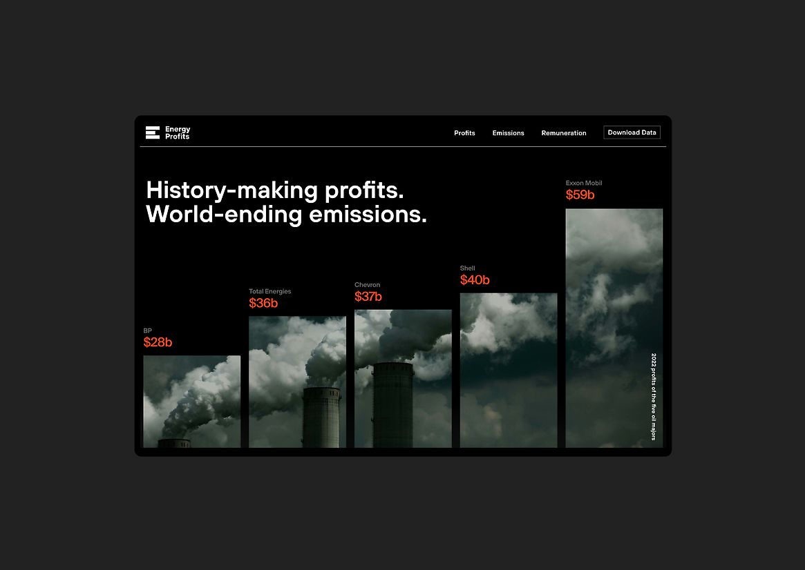 As a result, we created the ‘Energy Profits’ brand and website. A hard-hitting and visually compelling site that brings to life the uncomfortable and shocking statistics, highlighting just how much oil companies and their CEOs are profiting at the expense of the planet.
