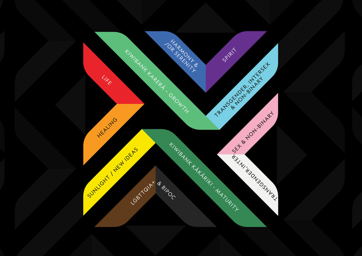 Te Kahukura Kāpuia was crafted as Kiwibank’s pride symbol – a unique identifier born from the new identity and one that recognises the ever-evolving Pride community itself. Kahukura references ‘multicoloured’ and ‘rainbow’. Kāpuia references ‘to gather’ or ‘unite as one’.