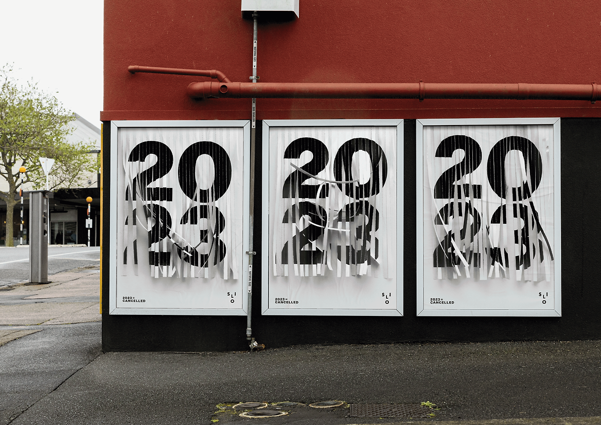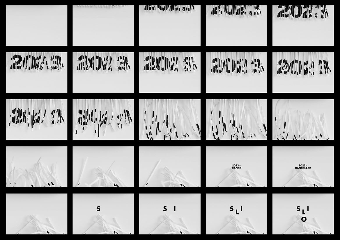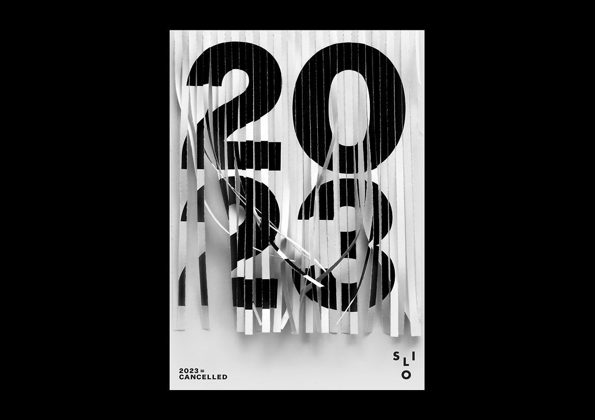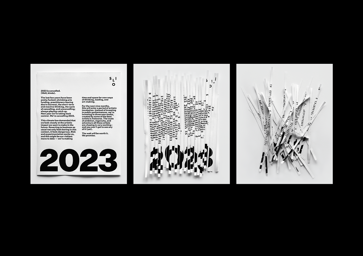 A bold typographic response was required, as there was no budget for photography. The upcoming season of productions were metaphorically abolished as we physically engaged in shredding the year 2023. Type became theatrical in three dimensions, which became image.