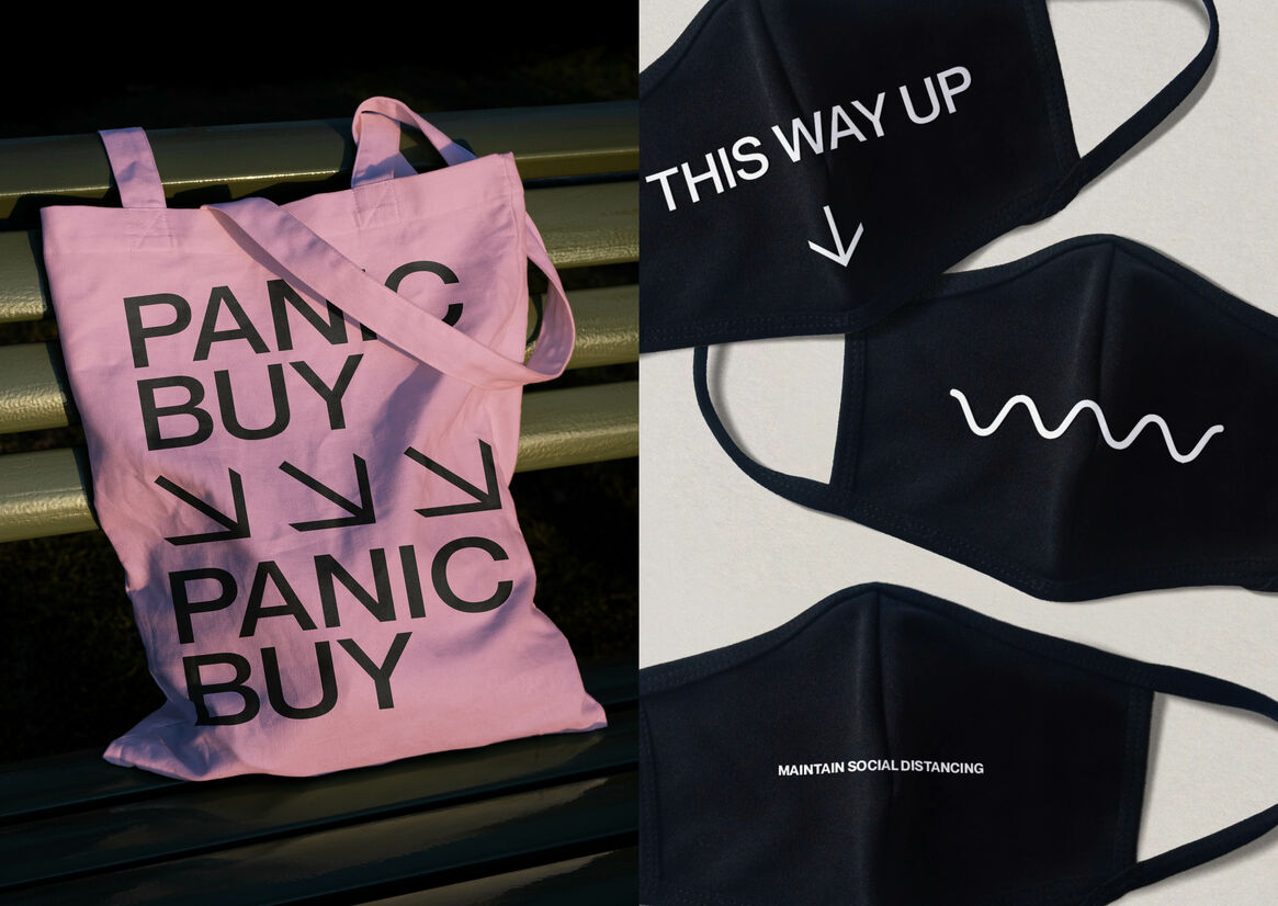 We utilised a utilitarian, direct style of messaging to mimic official government messaging, however made the messages intentionally confusing. Protective face masks, available on the night of the exhibition, were labeled with contradictory instructional information –‘maintain social distancing’ written so small that you would have to get closer than 1.5m to read it, while a tote bag tells you exactly what not to do in a pandemic –panic buy. Furthermore, symbols and instructions on in situ posters appear maze-like, confusing passers-by. The absurdity of the instructions is a tongue in cheek ridiculing of the poorly translated COVID-19 messaging that inspired the Mistranslations project. By creating this confusion, our identity bridges the gap of experience between linguistically diverse people who suffered because of messaging blunders and those who did not encounter any problems with accessing health information. The latter were able to experience a fraction of the confusion and frustration experienced by non-English speaking communities.