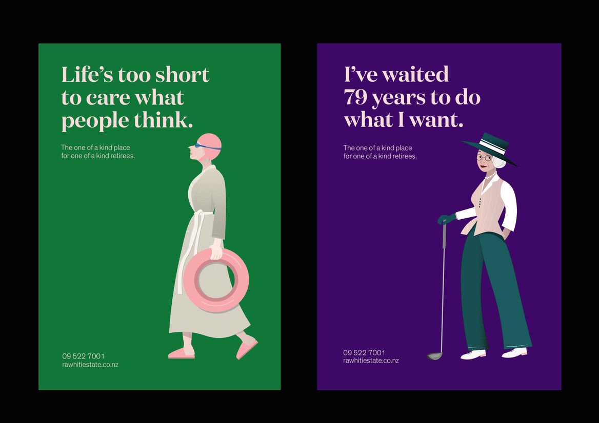 Rawhiti Estate is a boutique retirement village located in Remuera. We were tasked with creating a campaign that differentiated Rawhiti from the competition. A deep dive into the retirement village industry revealed that the positioning—at the time—for virtually all the brands in this space incorporated photography of “deliriously happy elderly people on bowling greens”.