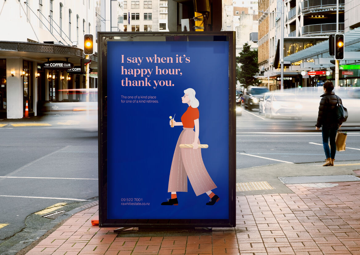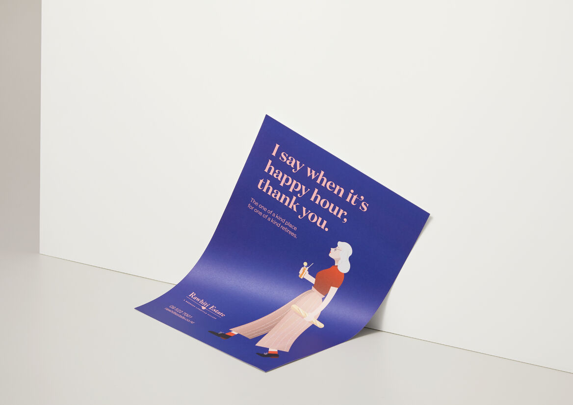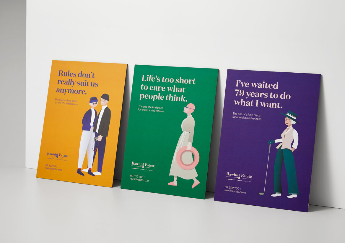 This illustrative approach allowed us to inject vibrant colours evocative of our characters’ distinctive personalities and dispositions into the campaign collateral. The result is a vivid and eye-catching set of design communications that looks unlike anything else in the market. Upon its launch, it generated a word-of-mouth buzz in Remuera. Almost a year onwards, Rawhiti Estate is now completely full, with a waiting list that continues to grow.