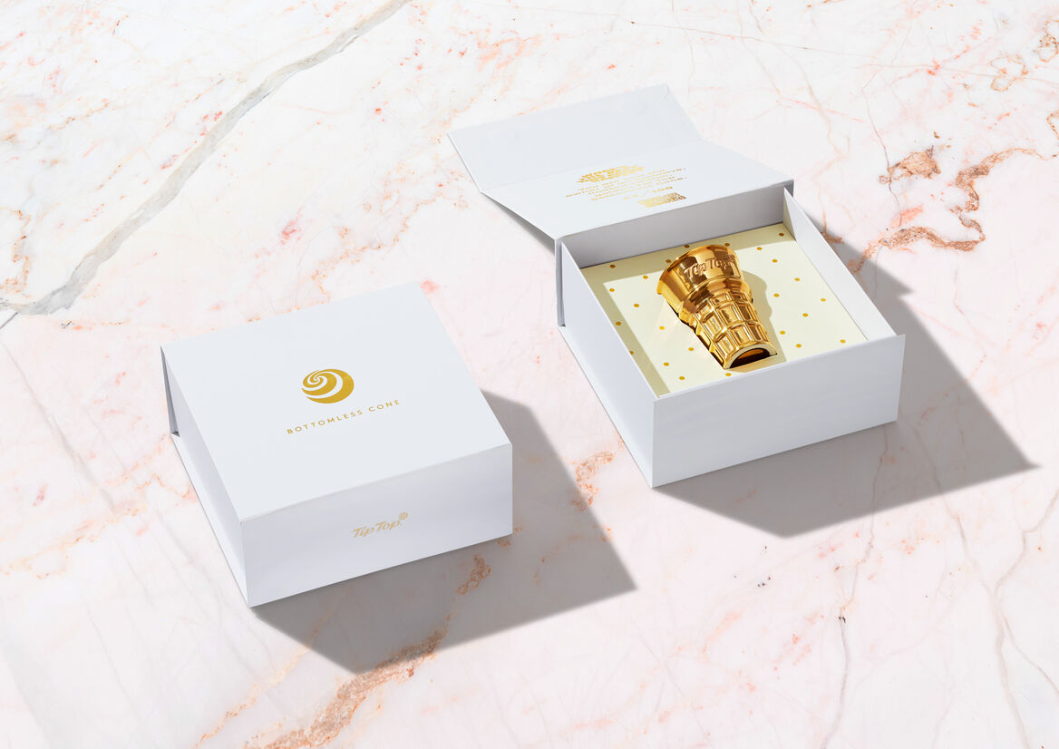“You’ve won a limited edition, bottomless golden cone for bottomless Tip Top Ice Cream”