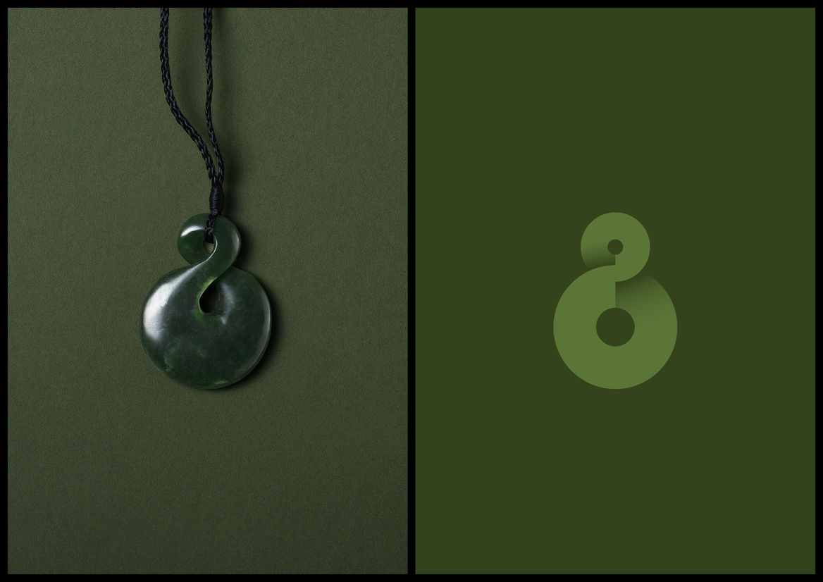 Our pin design honoured the pounamu, rather than mimicking it. We simplified the pounamu’s fluid curves, three-dimensional form and rich colours. Using flat form, block colour and geometric shading modernised the pounamu as a simple, powerful symbol.