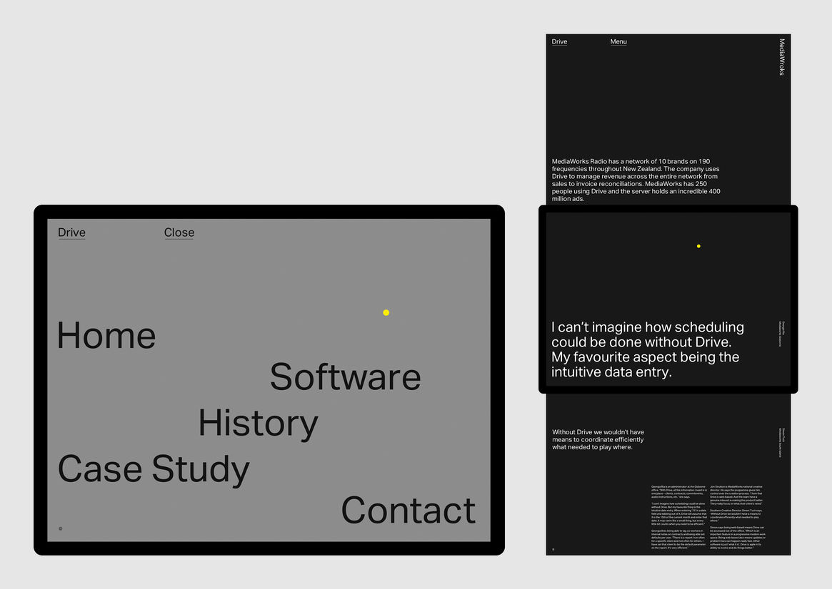 Graphic Business Communication Colour Award Graphics Design Communication Design Craft Editorial and Books Environmental Graphics Large Brand Identity Packaging Self Promotion Small Brand Identity Student & Academic Graphics Animation Digital Film Graphic Moving Image (archived 2025) Product Social Good Award Spatial Toitanga Value of Design Award User Experience Award (archived 2019) All categories Business Communication Colour Award Graphics Design Communication Design Craft Editorial and Books Environmental Graphics Large Brand Identity Packaging Self Promotion Small Brand Identity Student & Academic Graphics All years 2025 2024 2023 2022 2021 2020 2019 2018 2017 2016 2015 2014 2013 2012 2011 2010 Studio A-Z McCarthy 114 Drive Finalist 2020 Design Communication Credits Pou Auaha / Creative Directors Matt Kitto, Stephen McCarthy Ringatoi Matua / Design Director Richard M. Burson Ngā Kaimahi / Team Members Scott Bolton, Joel Kitto, Stefan Downs Client Drive Software