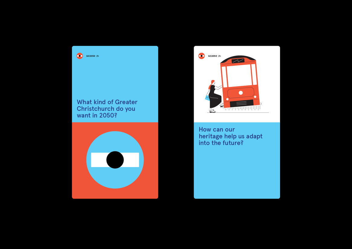 The Greater Christchurch Partnership tasked us with creating a dynamic identity system. A wide-range of questions broken into six categories seeks to understand the community’s aspirations for the region’s future. The Greater Christchurch 2050 plan will then describe the kind of place we want for our future generations, and the actions we need to take over the next 30 years to make it happen.