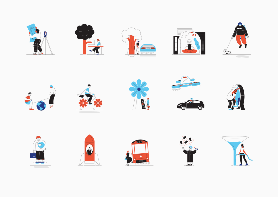 Large dynamic eyes hero the identity, seeking vision for the year 2050 that they are housed within. Joining with the playful nature of this motif is a range of future-focused illustrations, each forecasting a unique perspective of tomorrow. The vibrant colour palette and lively animations demand attention, with digital applications helping to create discussion and response to the partnership’s questions.