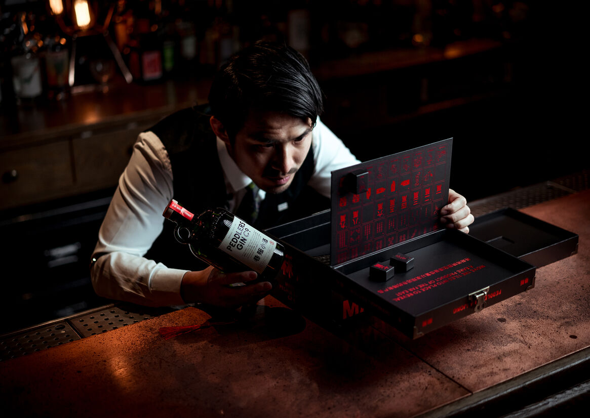 A week later, Peddlers sent a limited-edition mahjong box with the new bottle smuggled inside in a secret compartment. The key unlocked the box but the secret compartment could only be opened when completing the game of Peddlers Mahjong. This required the bartender to move the correct tiles into place with the final piece clicking to create a handle, which revealed the bottle via a trap door.