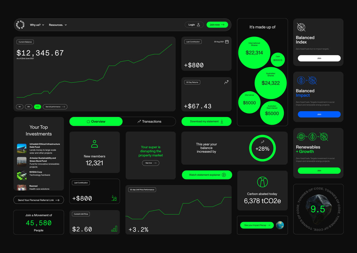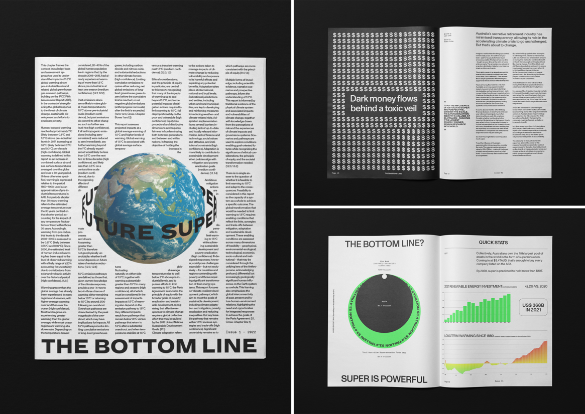 Future Super believes in the power of people and the collaborative process — this project was testament to that. They brought together a team of people wanting to use design to shake the system and shine a light on dishonesty and deceit. Working side-by-side, we built a bold, robust brand that not only stands out in a stale industry but helps to make a genuinely positive impact on the future. For both people and the planet.