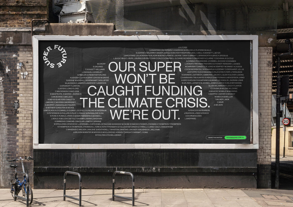 Putting their belief in people-power into play, Future Super asked us to not only push beyond what a superannuation company can look and sound like, but to reframe super from a means to save for the future to a way to actively save the future in the process.