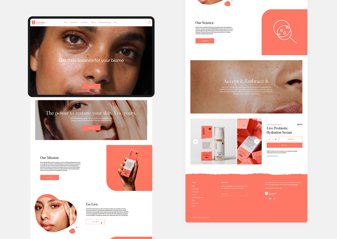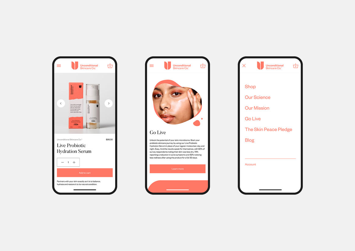 Everything from the brand's name – Unconditional Skincare Co. – to the tone of voice, design identity and packaging was developed to encourage women to look at their skin in a new way – as the solution, not the problem.