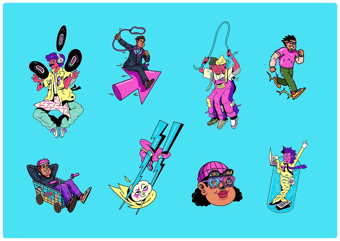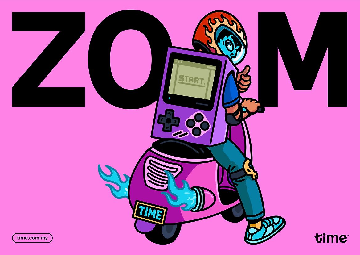 Illustrations played a key role in the identity. We worked with local illustrators to co-create a fun and friendly brand that championed and amplified Malaysian culture to show how Malaysians really spend time on the Internet. We set out to create illustrations that playfully reflect the local character, cultures and subtleties of Malaysian life — and life spent on the Internet. Teaming up with local illustrators, we developed a suite of illustrations that could be used as substitute letters within our type system — intertwining everyday Malaysian life into the Time brand.