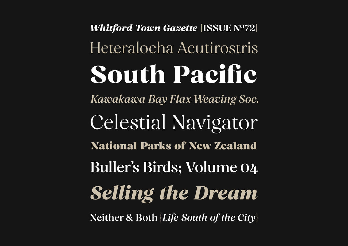 Graphic Business Communication Colour Award Graphics Design Communication Design Craft Editorial and Books Environmental Graphics Large Brand Identity Packaging Self Promotion Small Brand Identity Student & Academic Graphics Animation Digital Film Graphic Moving Image (archived 2025) Product Social Good Award Spatial Toitanga Value of Design Award User Experience Award (archived 2019) All categories Business Communication Colour Award Graphics Design Communication Design Craft Editorial and Books Environmental Graphics Large Brand Identity Packaging Self Promotion Small Brand Identity Student & Academic Graphics All years 2025 2024 2023 2022 2021 2020 2019 2018 2017 2016 2015 2014 2013 2012 2011 2010 Studio A-Z Alistair McCready Whitford Typeface Family 2019 Design Craft Credits Pou Auaha / Creative Director Alistair McCready Kaitautoko / Contributor Jeremy Tankard Client Type As Monument