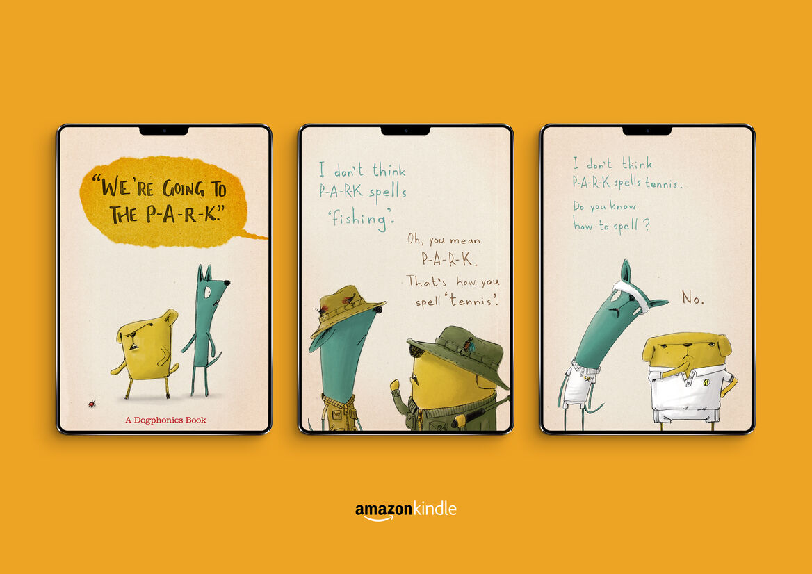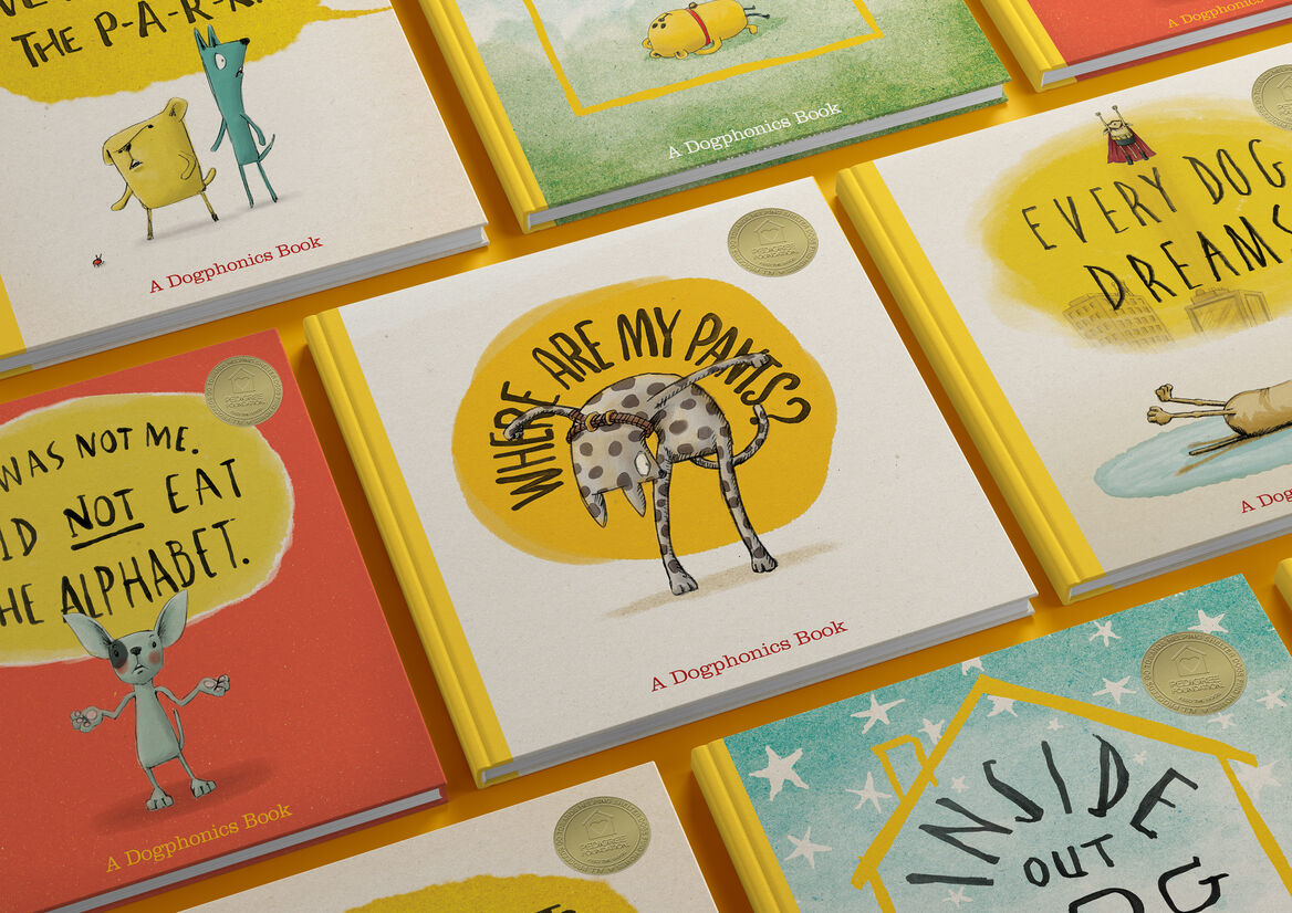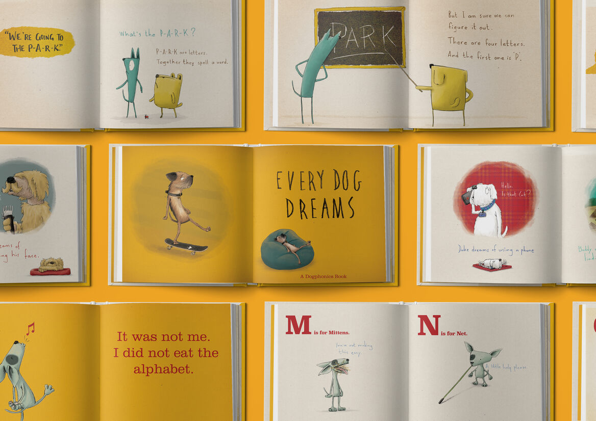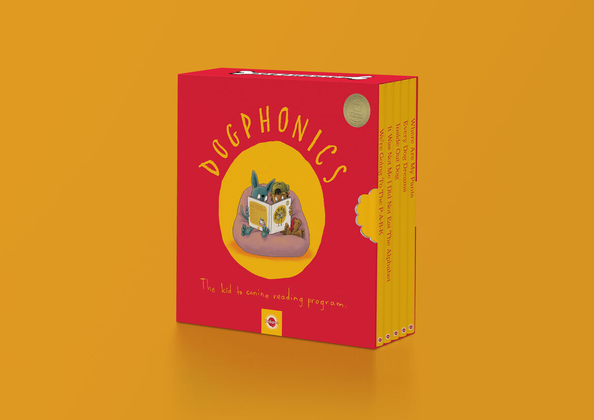 The Dogphonics books needed to be both visually interesting for kids and a tonal match for the entertaining stories. We wanted the illustrations to be lovingly handcrafted and full of character to really bring the stories to life. Bitemarks were added to the box instead of the usual cut-out finger holes to add another layer of charm. Working with child educational experts, the hand drawn style was also taken to typography and copy with careful attention to legibility, letterform and alignment to ensure maximum readability and connection to the illustrations.
