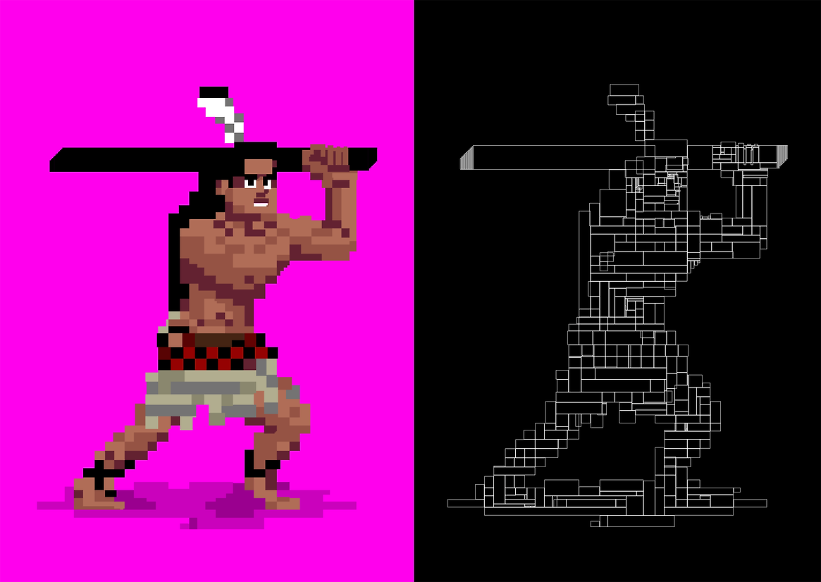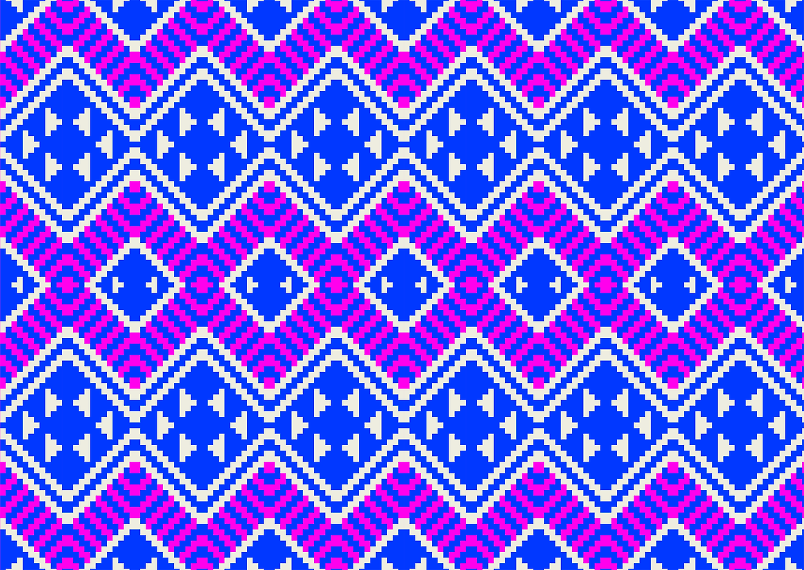 To build out our pixel illustrations & āhuatanga, we drew from the way takitahi replicates a two-dimensional square stitch, creating new designs inspired by waharua kopito tāniko and tukutuku.